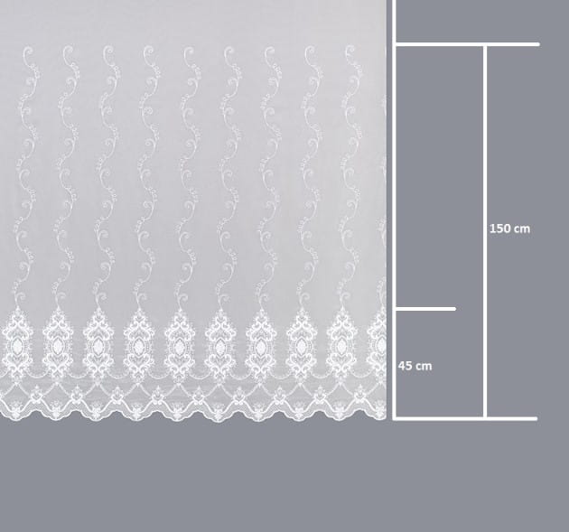 Ta haftowana firana markizeta to doskonały wybór dla osób, które cenią sobie wysoką jakość wykonania i trwałość. Dzięki delikatnemu haftowi i lekkiemu połyskowi materiału, firana nie tylko dekoruje okno, ale również podkreśla charakter wnętrza, nadając mu wyjątkowego uroku.