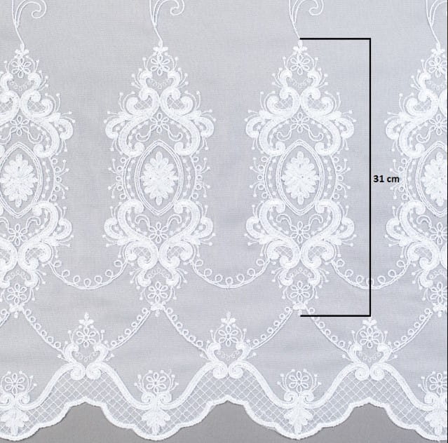 Firana haftowana markizeta błyszcząca biała – wysokość 180 cm