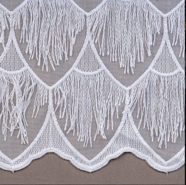 Firana z Aplikacją i Frędzelkowym Wykończeniem – Biała 280 cm
