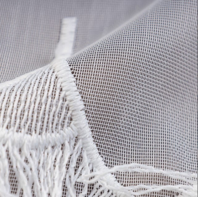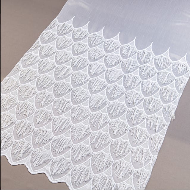Nadaj swojemu wnętrzu wyjątkowego charakteru dzięki firanie wykonanej z lekkiej, półprzezroczystej markizety, ozdobionej efektowną aplikacją w kształcie łuskowatego wzoru zakończonego subtelnymi frędzelkami. To niezwykle oryginalna dekoracja, która łączy w sobie nowoczesny design z nutą klasycznej elegancji.