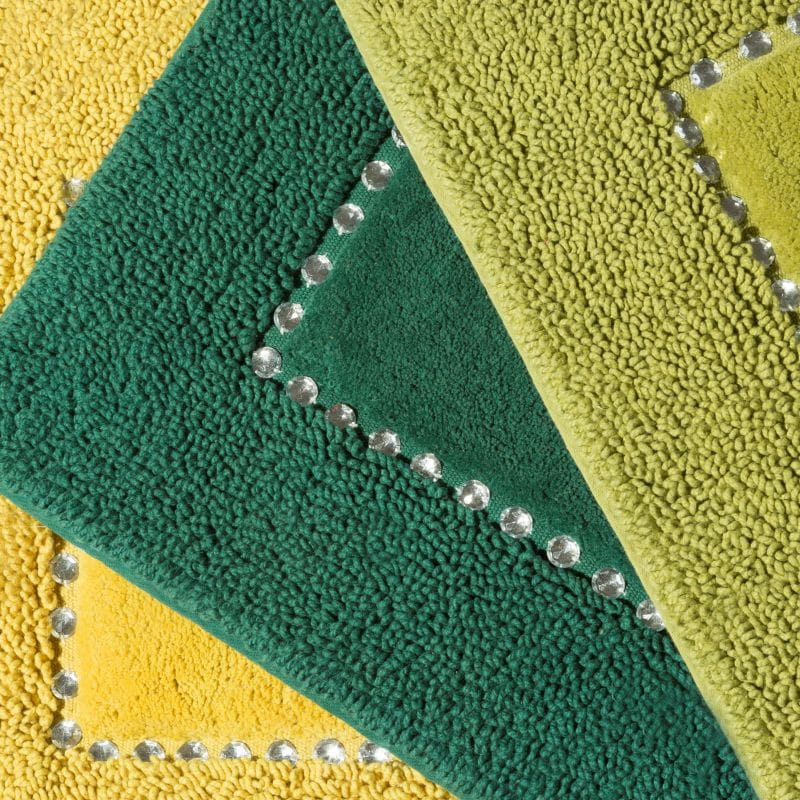 Miękki i efektowny dywanik zdobiony kryształkami , rozmiar: 50 x 70 cm, kolor MUSZTARDOWY. Skład: 100% bawełna
