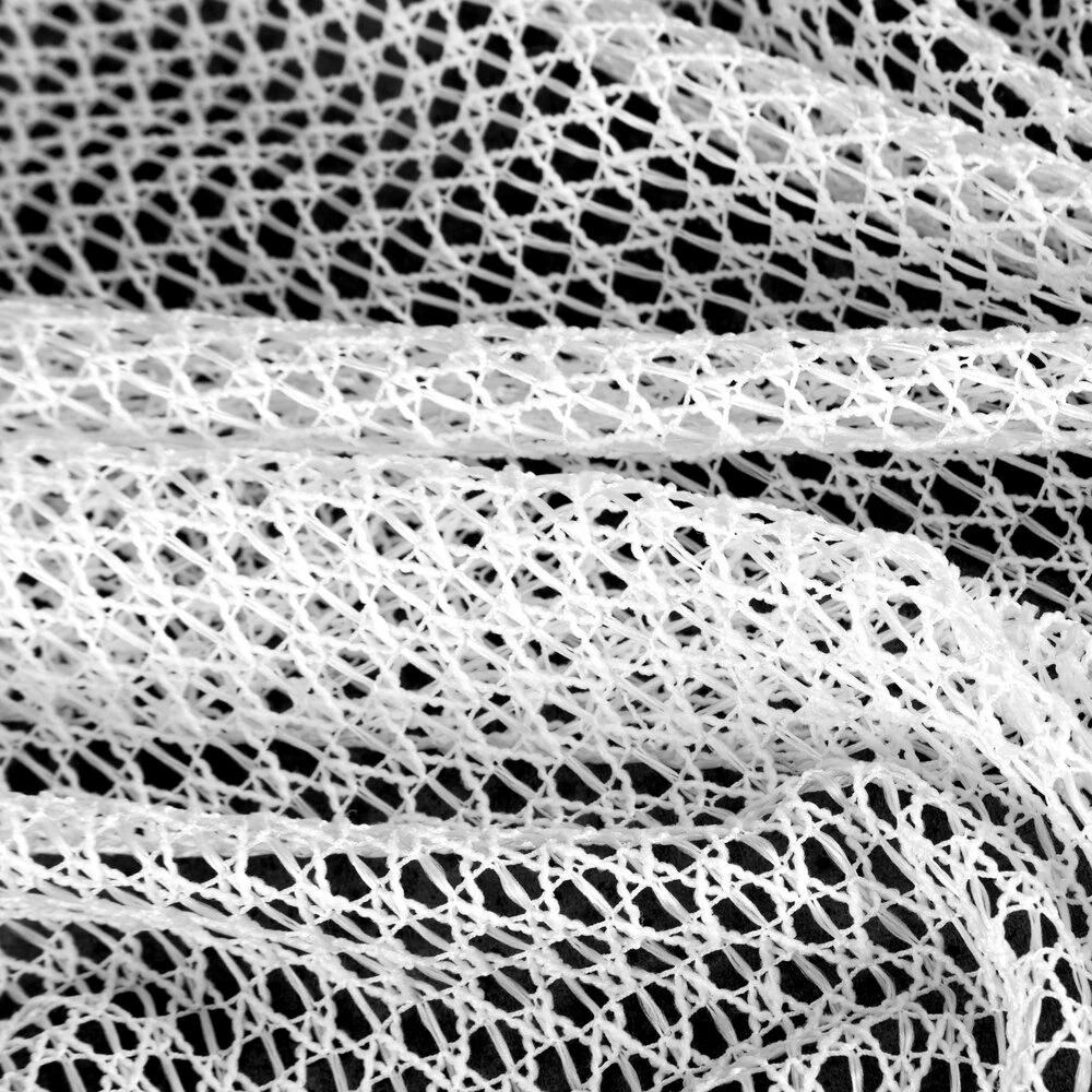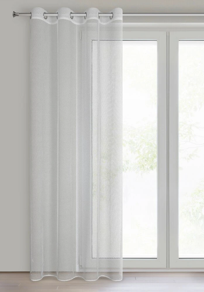 Firana gotowa o strukturze siatki szerokość: 140 cm, długość: 250 cm, kolor: biały, Gramatura: 100 GSM, Skład: 100% poliester