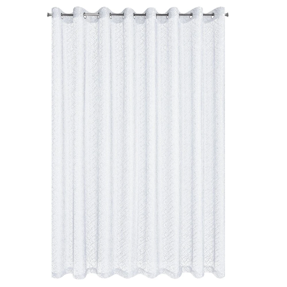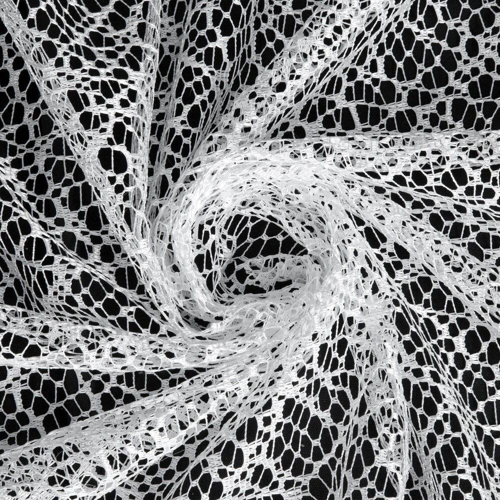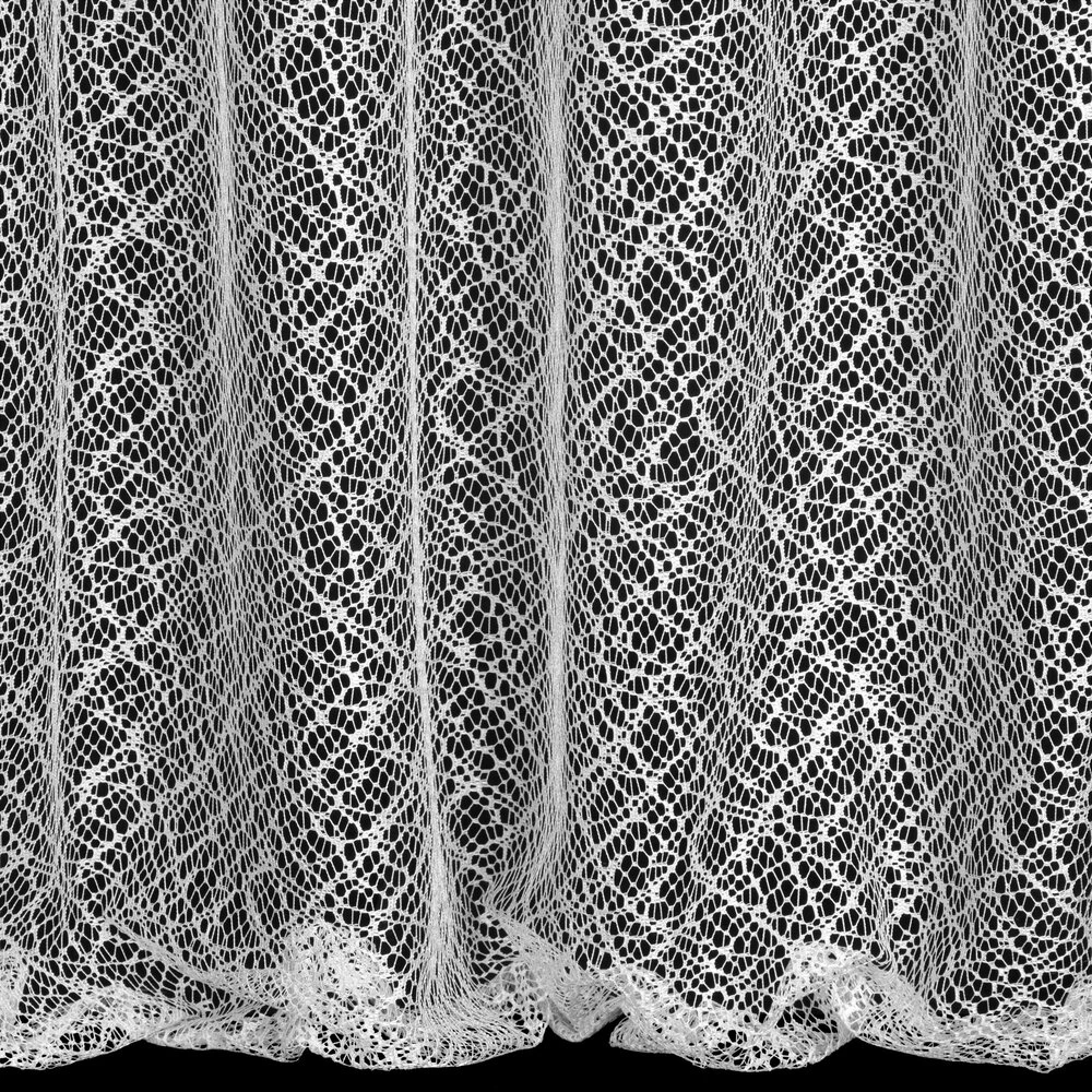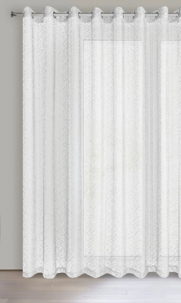 Nowoczesna firana z nieregularnej siateczki o subtelnym połysku i róznej wielkości oczek. Doskonała również w roli dekoracyjnej zasłony. Nie należy wybielać. szerokość: 300 cm, długość: 250 cm, kolor: biały, Gramatura: 120 GSM, Skład: 100% poliester