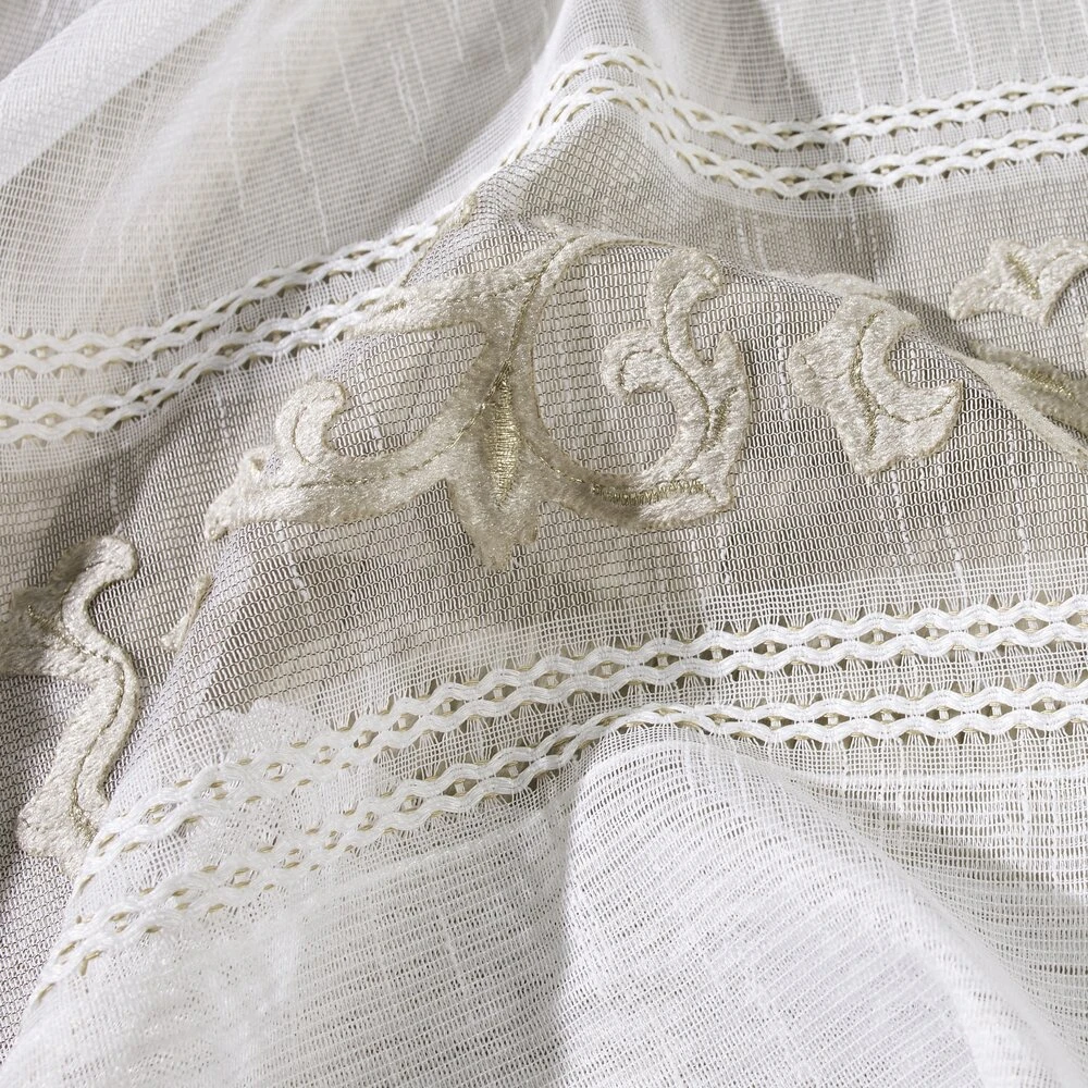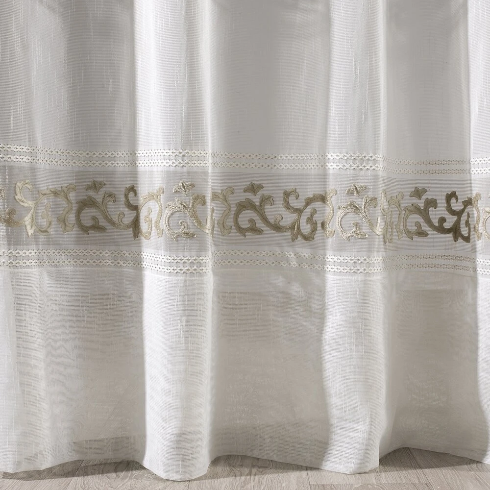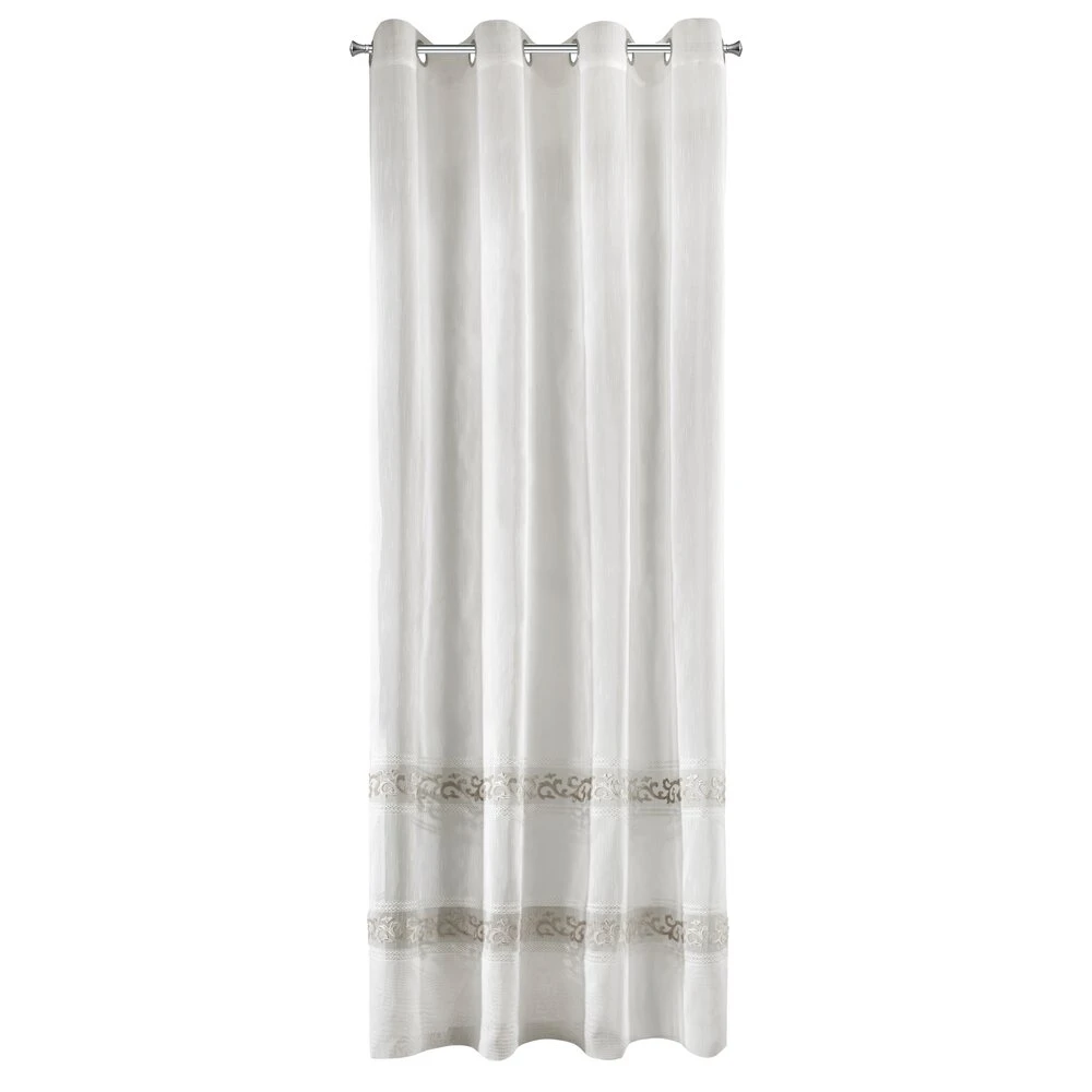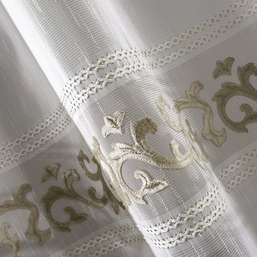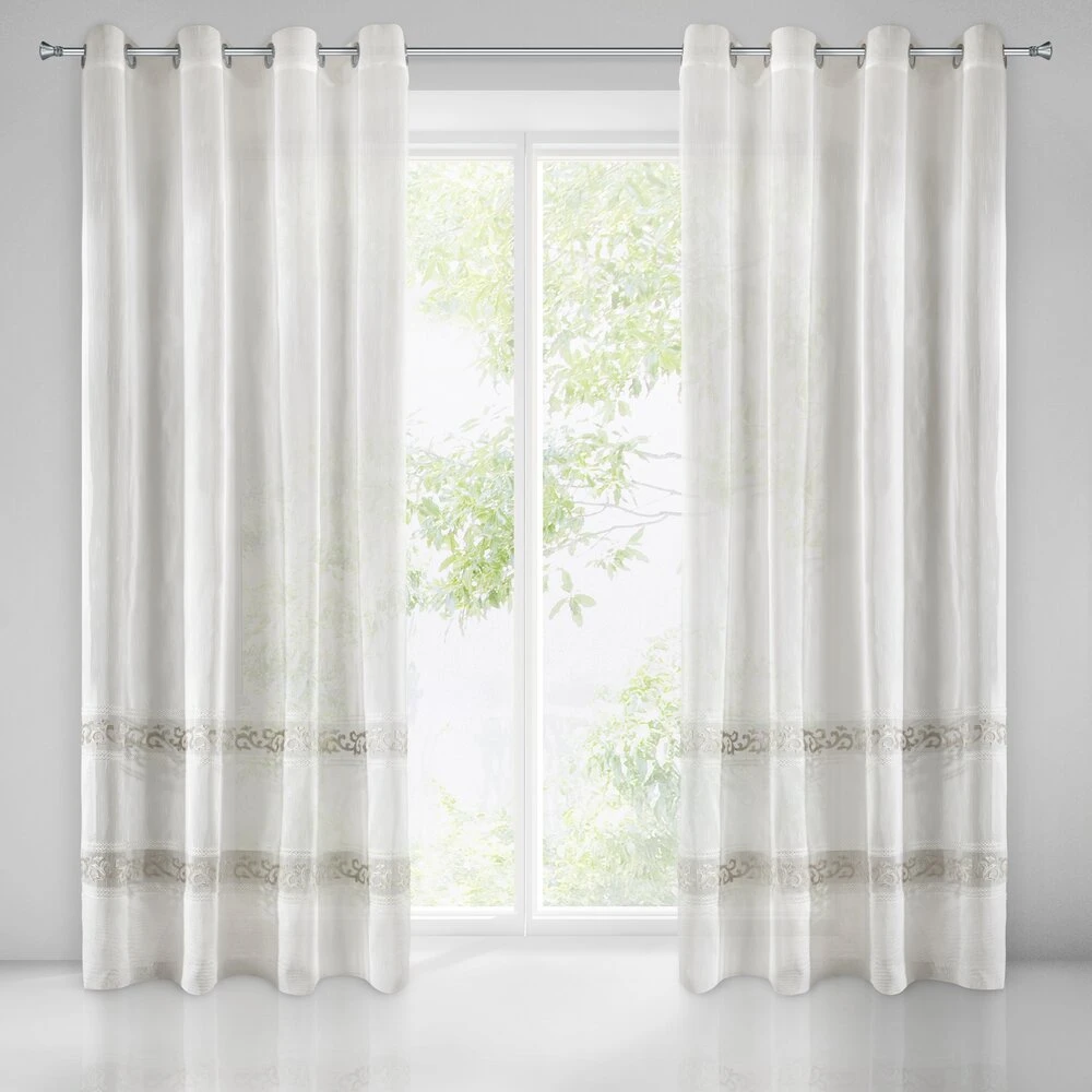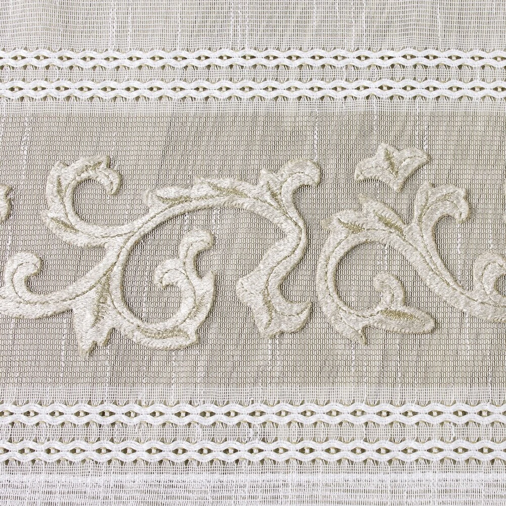 Firana gotowa zdobiona efektownym welwetowym wzorem szerokość: 140 cm, długość: 270 cm, kolor: biały, Gramatura: 70 GSM, Skład: 100% poliester