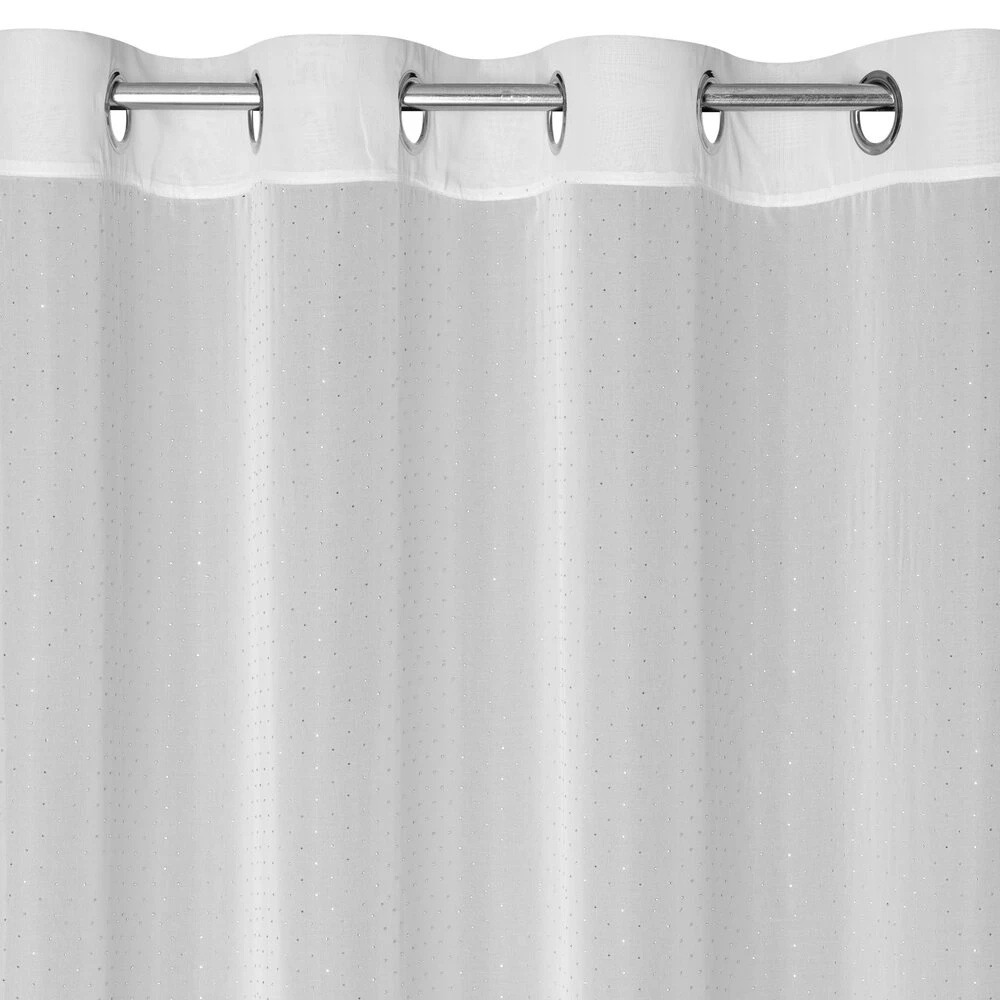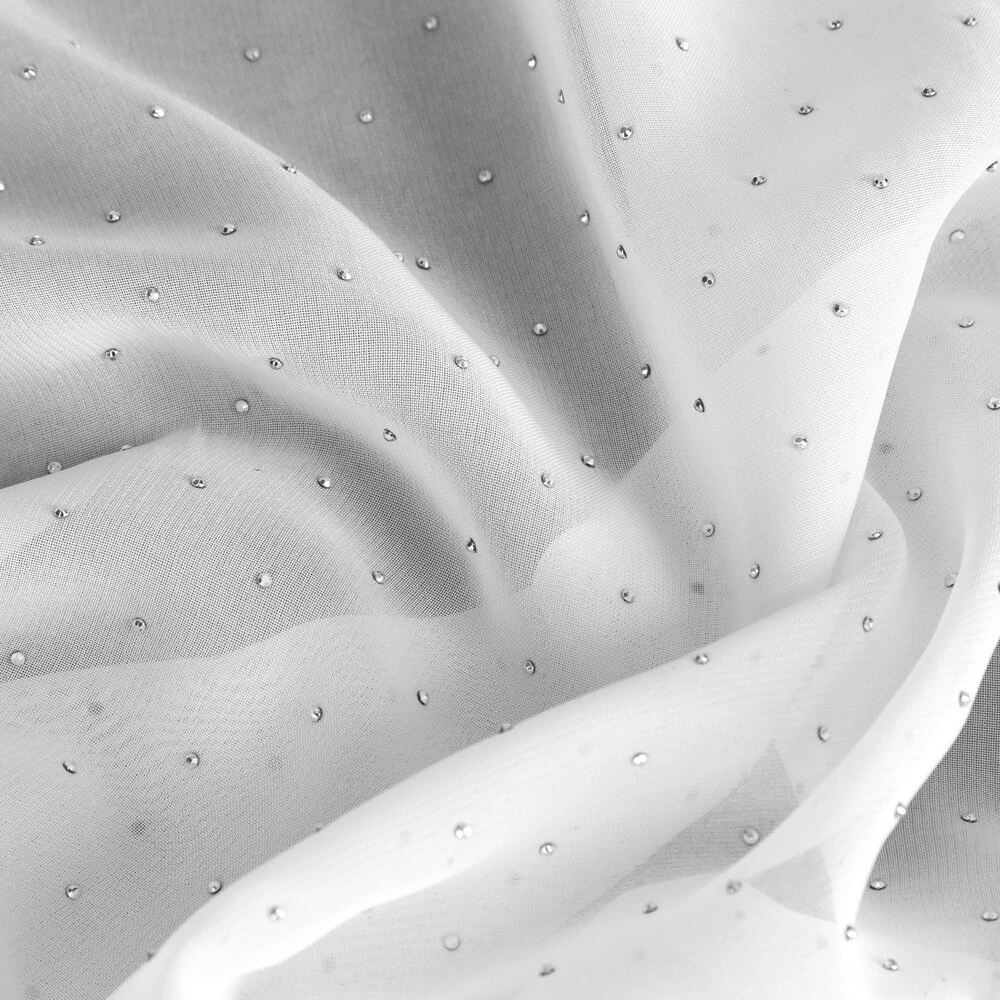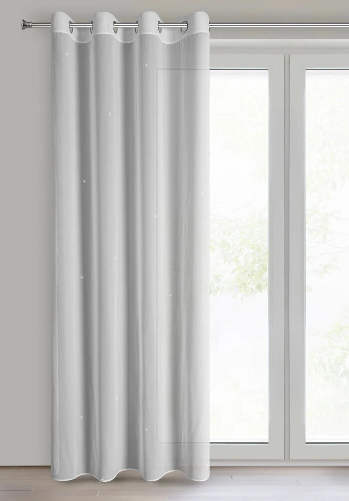 Firana gotowa szyfonowa zdobiona diamencikami szerokość: 140 cm, długość: 250 cm, kolor: biały, Gramatura: 60 GSM, Skład: 100% poliester