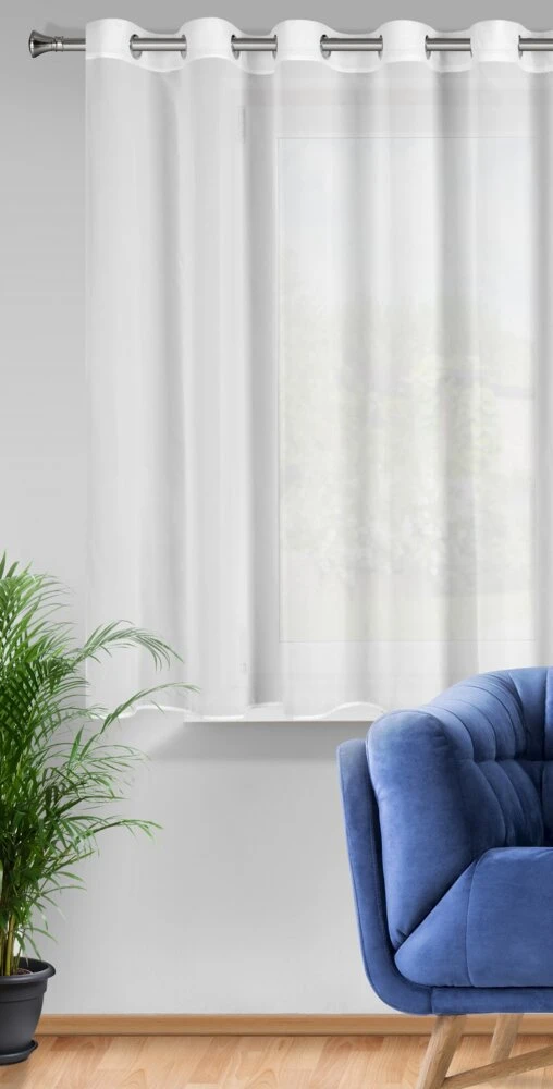Firana gotowa z gładkiej tkaniny szyfonowej szerokość: 295 cm, długość: 160 cm, kolor: biały, Gramatura: 60 GSM, Skład: 100% poliester
