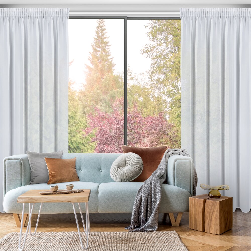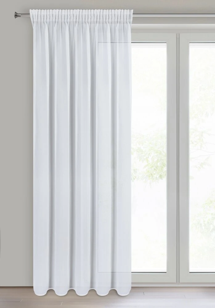 Firana gotowa z gładkiej tkaniny szyfonowej szerokość: 135 cm, długość: 270 cm, kolor: biały, Gramatura: 60 GSM, Skład: 100% poliester
