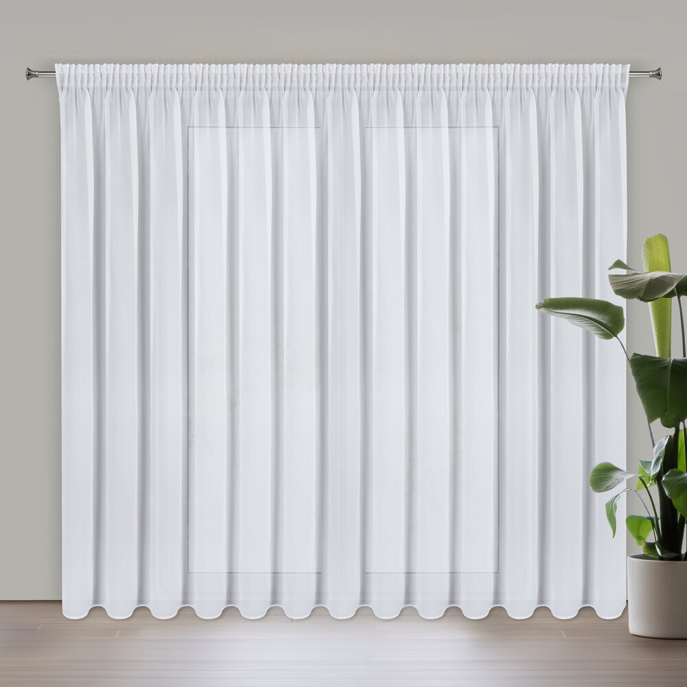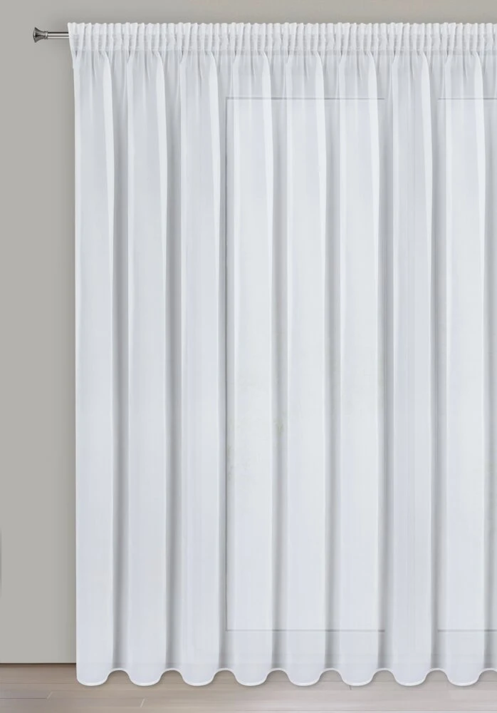 Firana gotowa z gładkiej tkaniny szyfonowej szerokość: 350 cm, długość: 270 cm, kolor: biały, Gramatura: 60 GSM, Skład: 100% poliester
