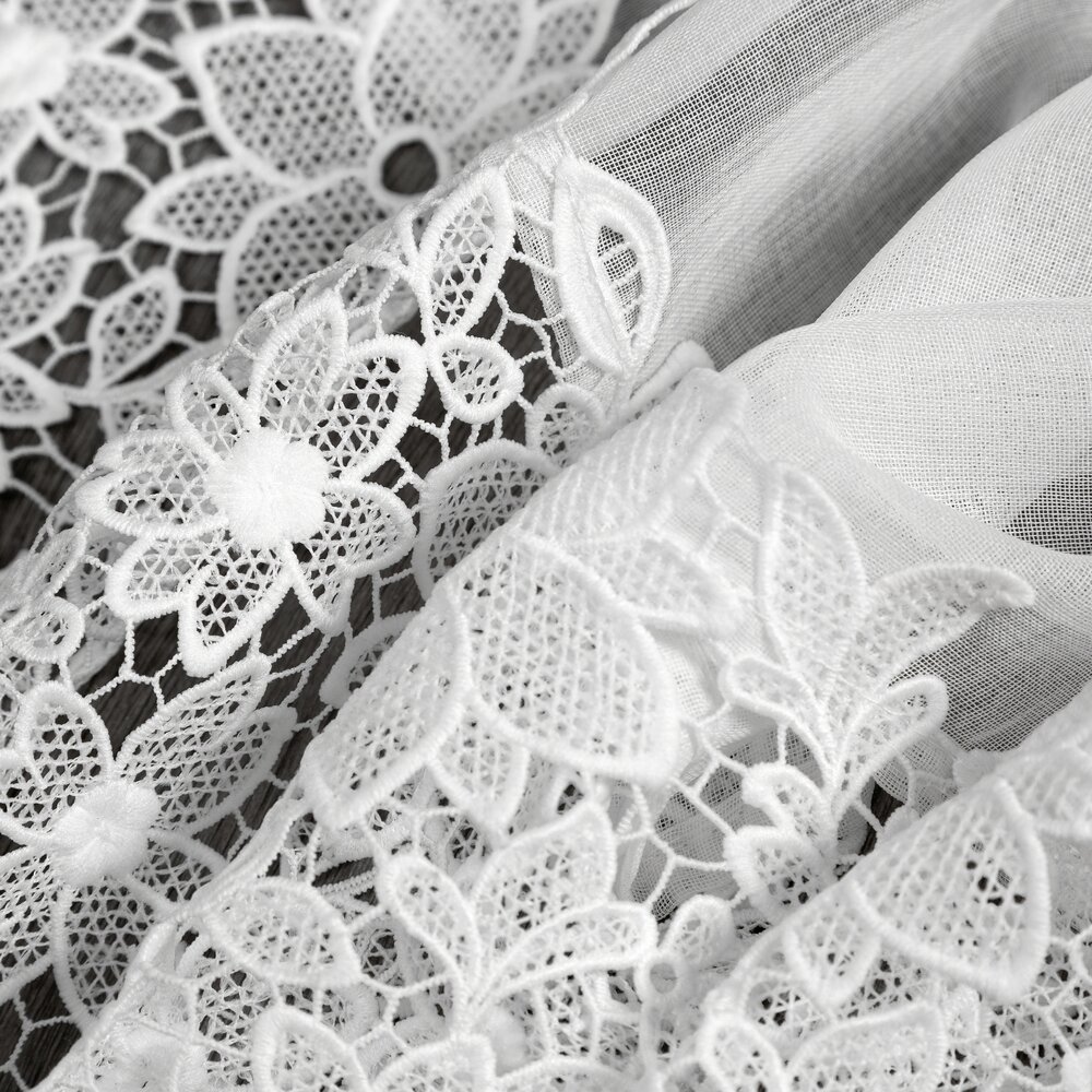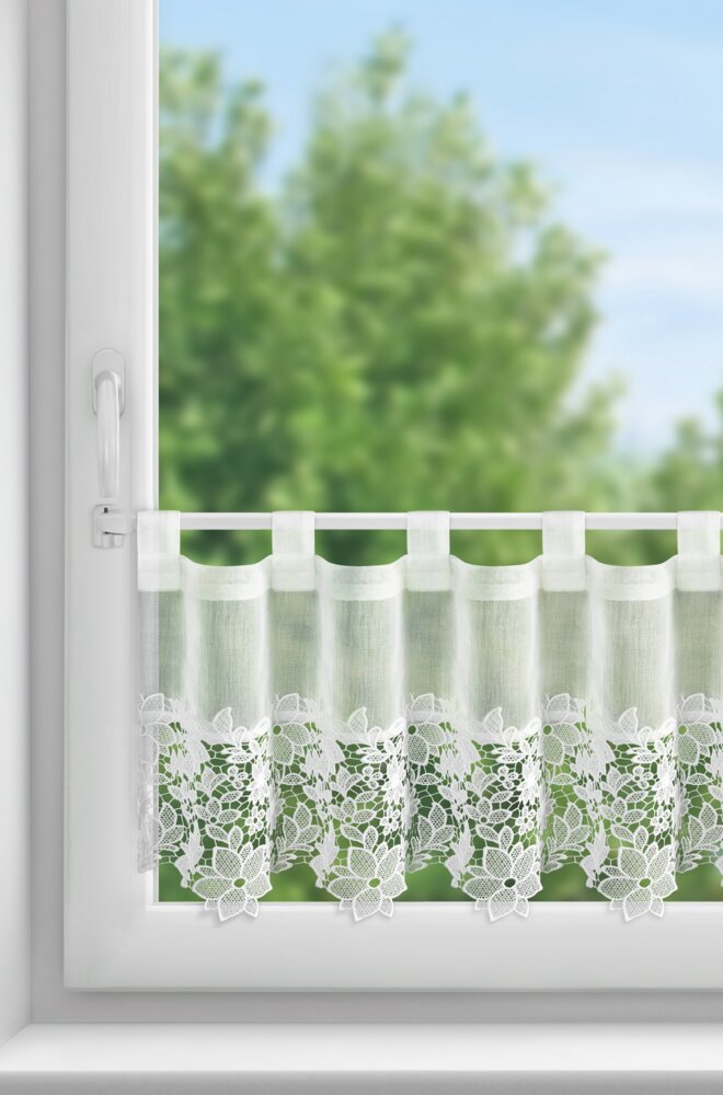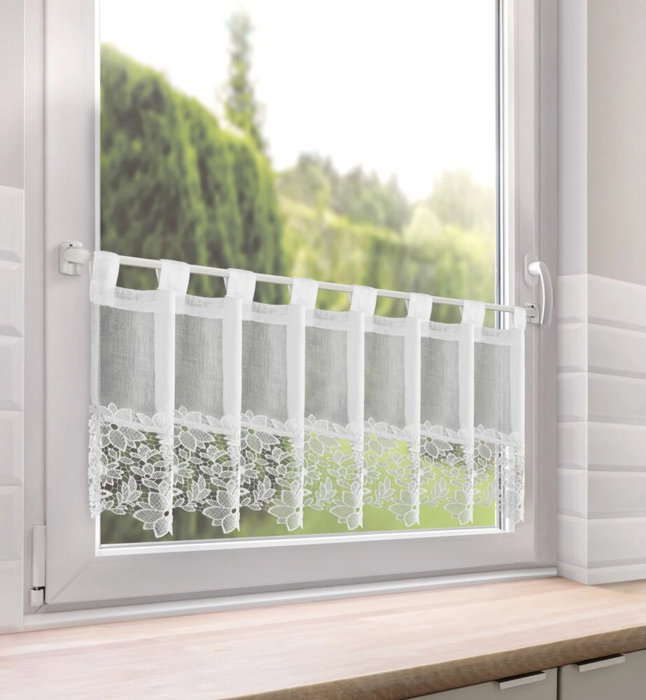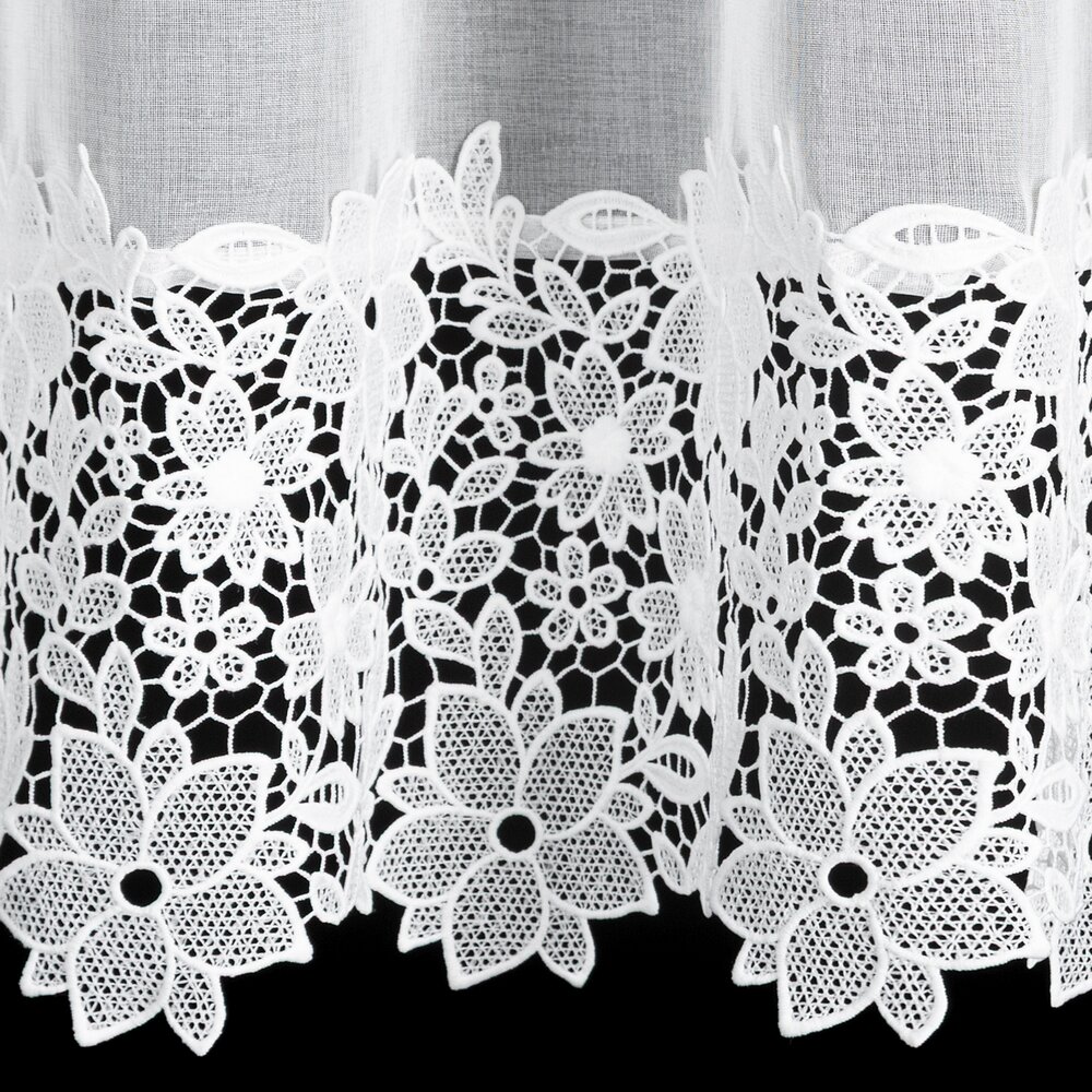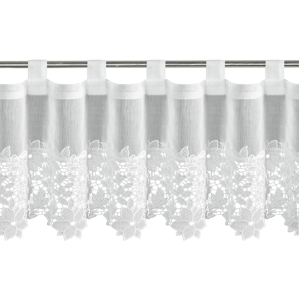 Zazdrostka gotowa zdobiona obszywką szerokość: 150 cm, długość: 40 cm, kolor: biały, Skład: 100% poliester