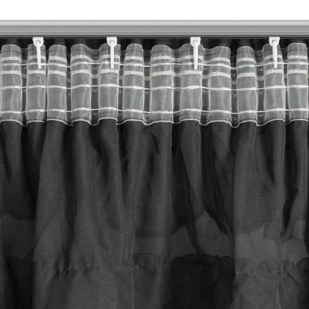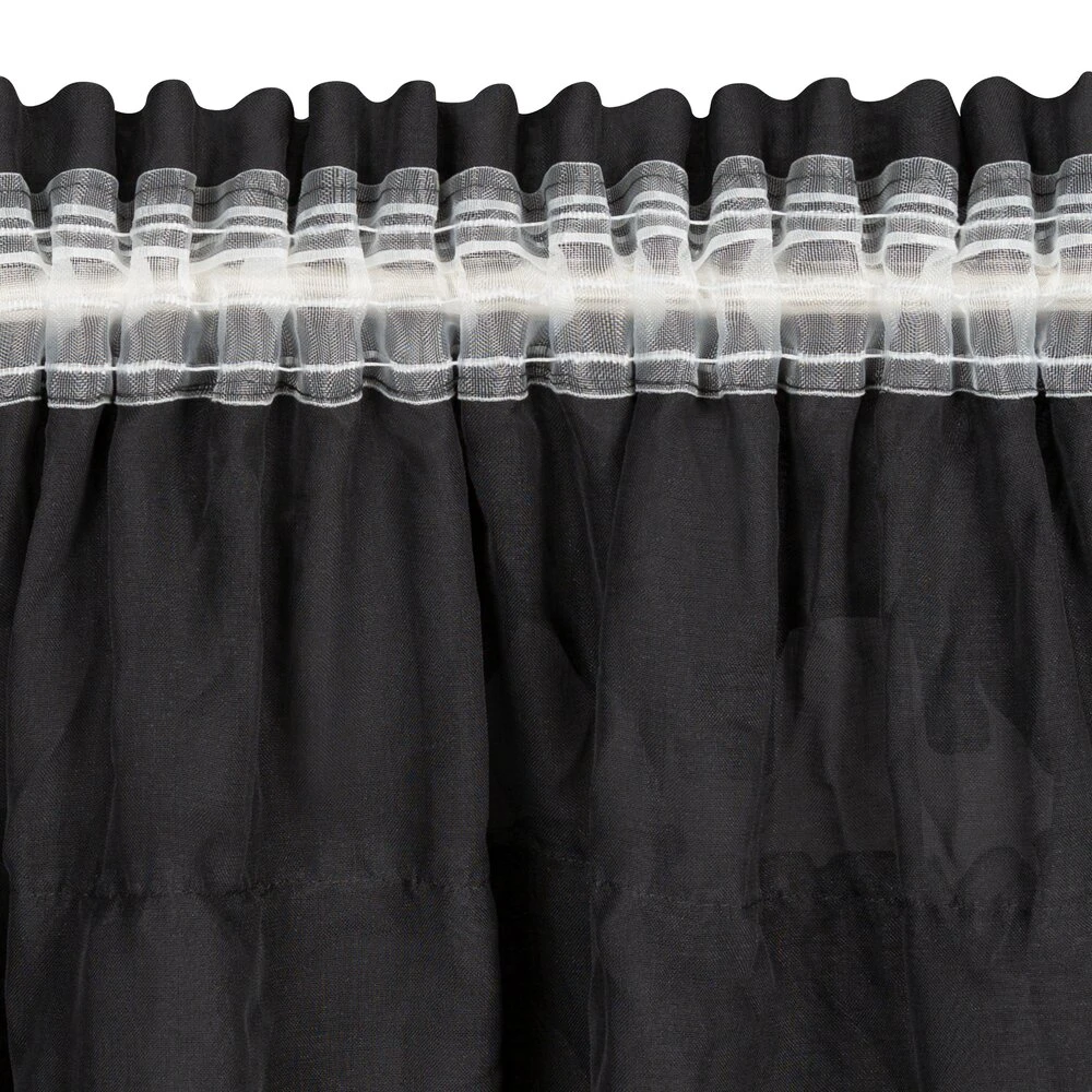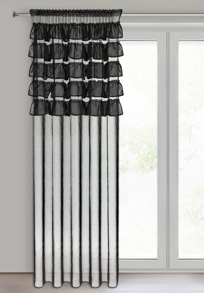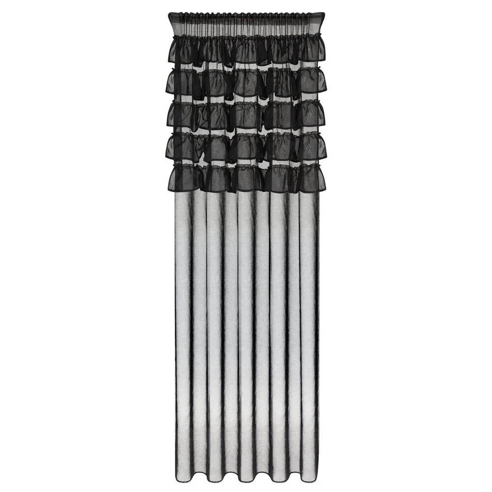 Firana gotowa zdobiona w górnej części falbankami szerokość: 140 cm, długość: 270 cm, kolor: czarny, Gramatura: 70 GSM, Skład: 100% poliester
