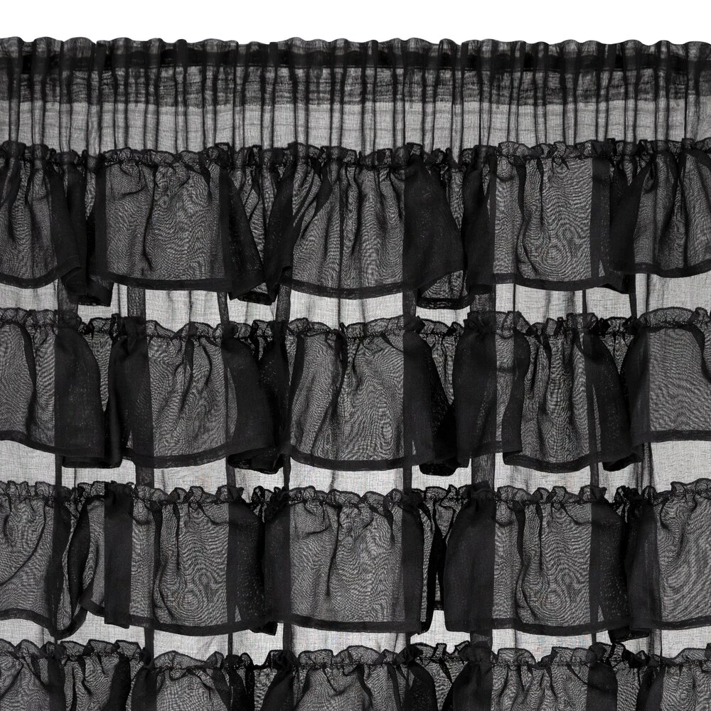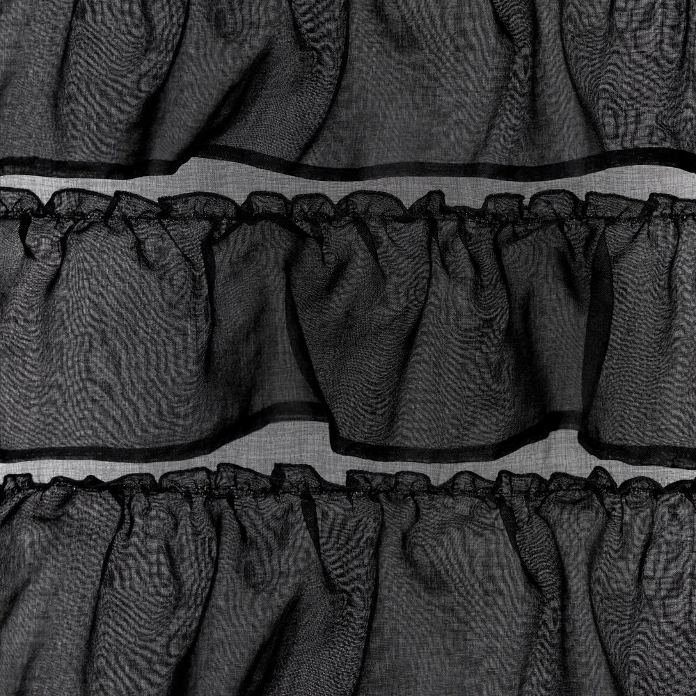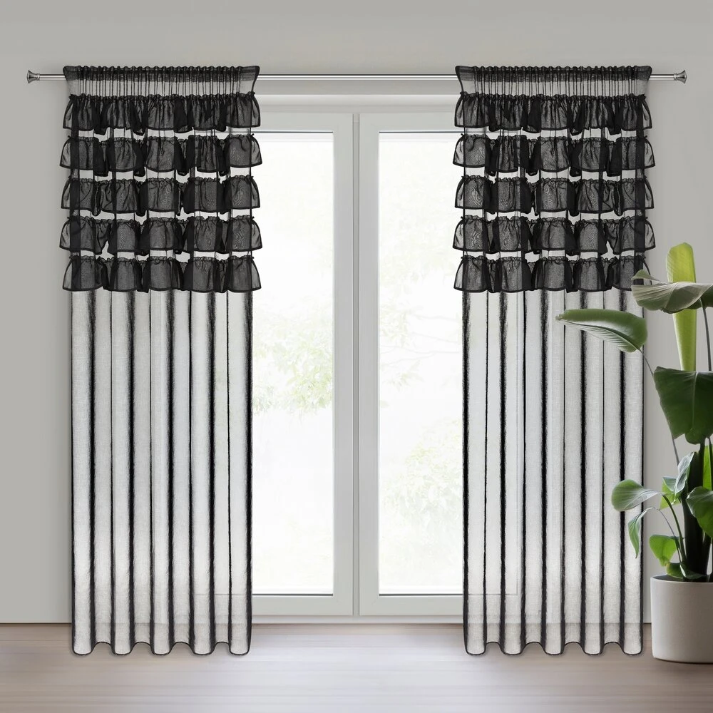 Firana gotowa zdobiona w górnej części falbankami szerokość: 140 cm, długość: 270 cm, kolor: czarny, Gramatura: 70 GSM, Skład: 100% poliester