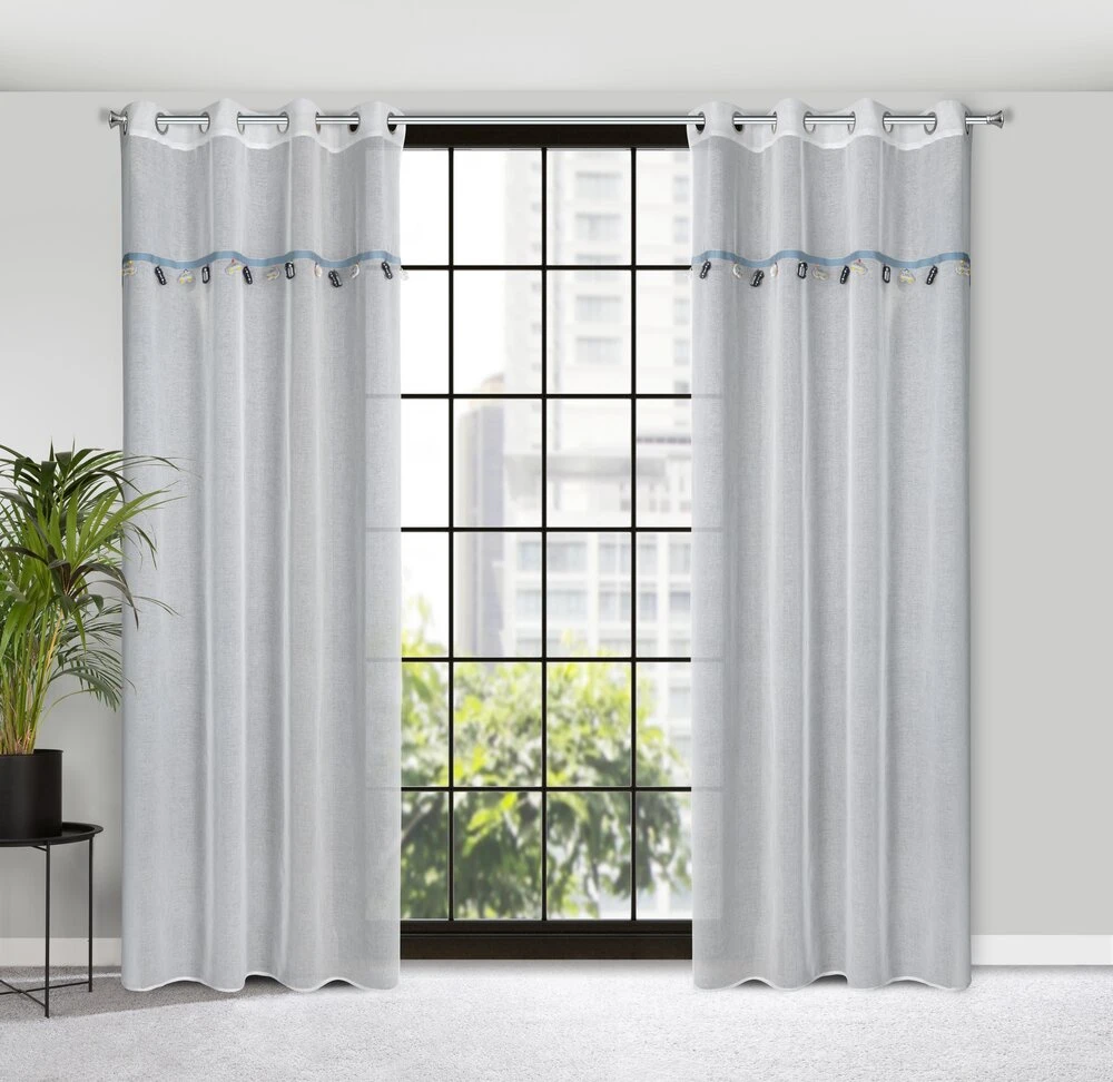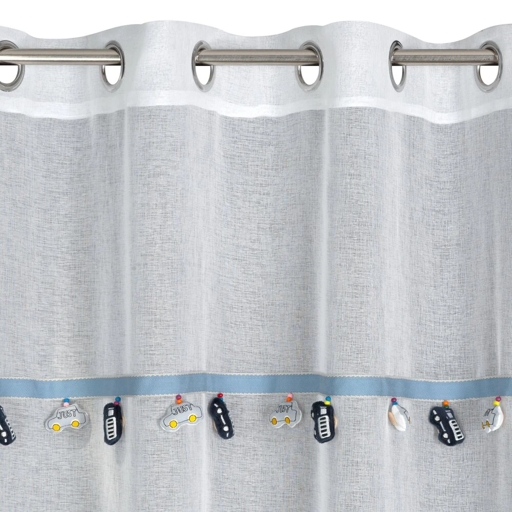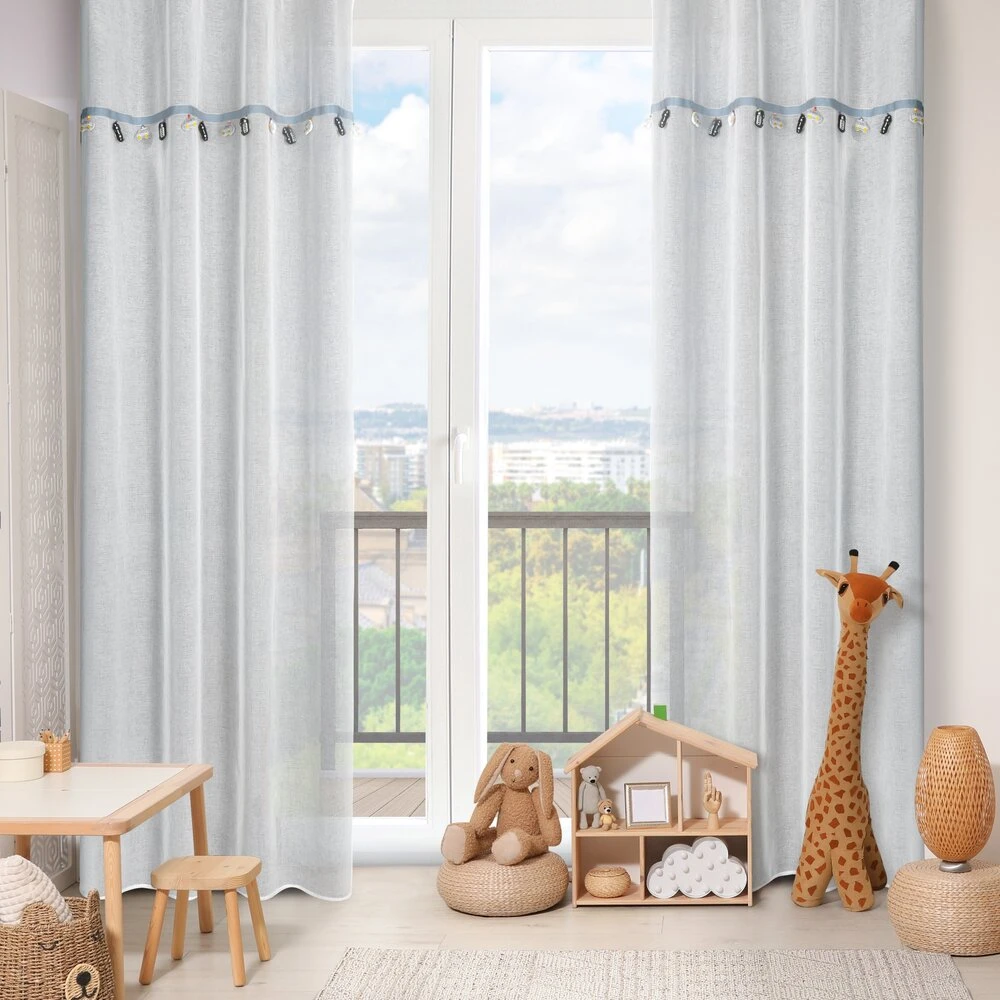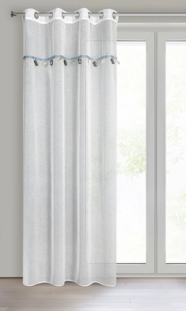 Firana gotowa z wszytą taśmą dekoracyjną z motywem dziecięcym szerokość: 140 cm, długość: 250 cm, kolor: biały, Gramatura: 50 GSM, Skład: 100% poliester