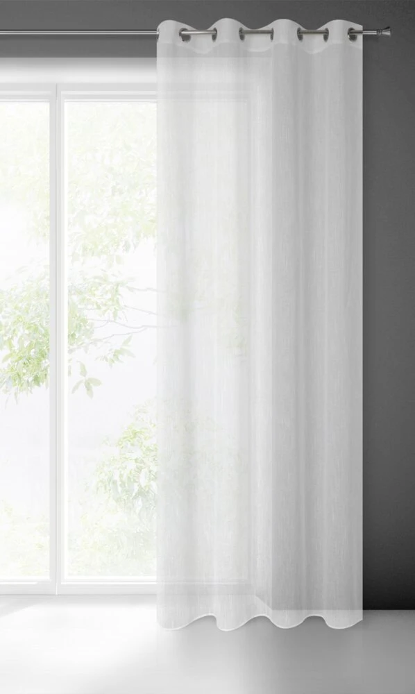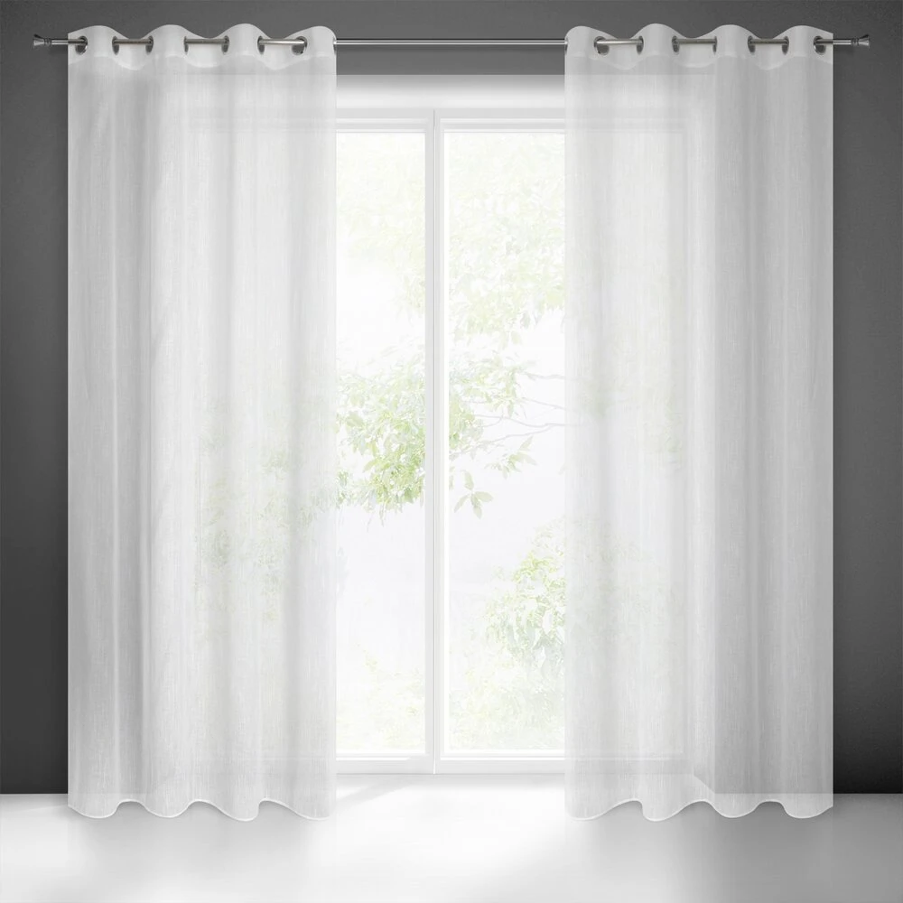 Firana gotowa o strukturze deszczyku szerokość: 140 cm, długość: 250 cm, kolor: biały, Gramatura: 130 GSM, Skład: 100% poliester
