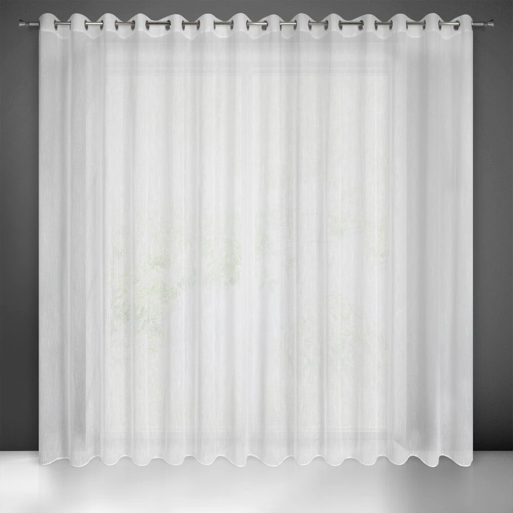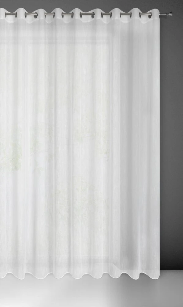 Firana gotowa o strukturze deszczyku szerokość: 300 cm, długość: 250 cm, kolor: biały, Gramatura: 130 GSM, Skład: 100% poliester