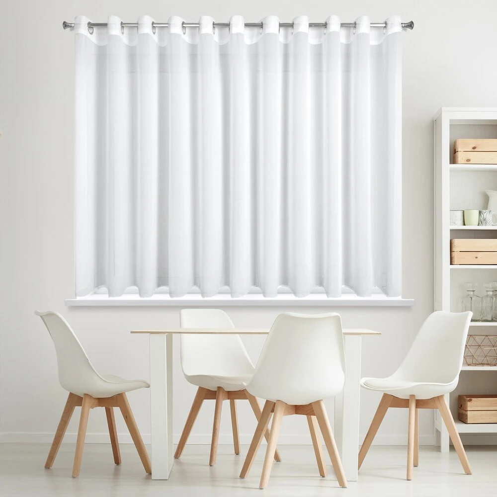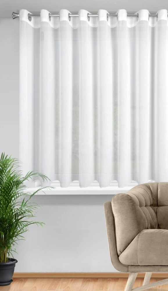 Firana gotowa z gładkiej tkaniny szyfonowej szerokość: 400 cm, długość: 160 cm, kolor: biały, Gramatura: 60 GSM, Skład: 100% poliester