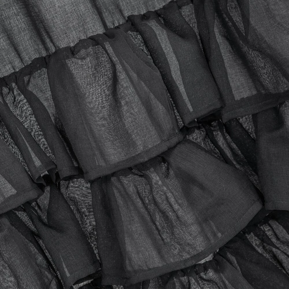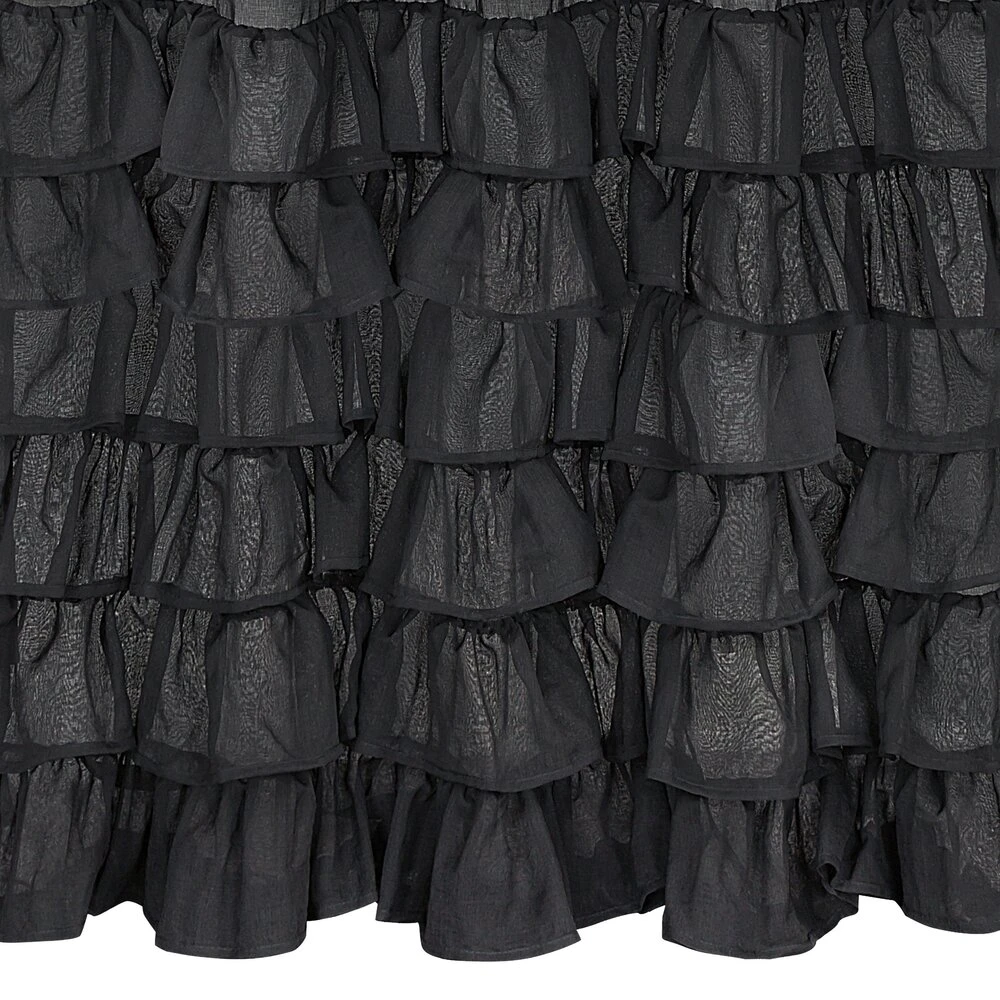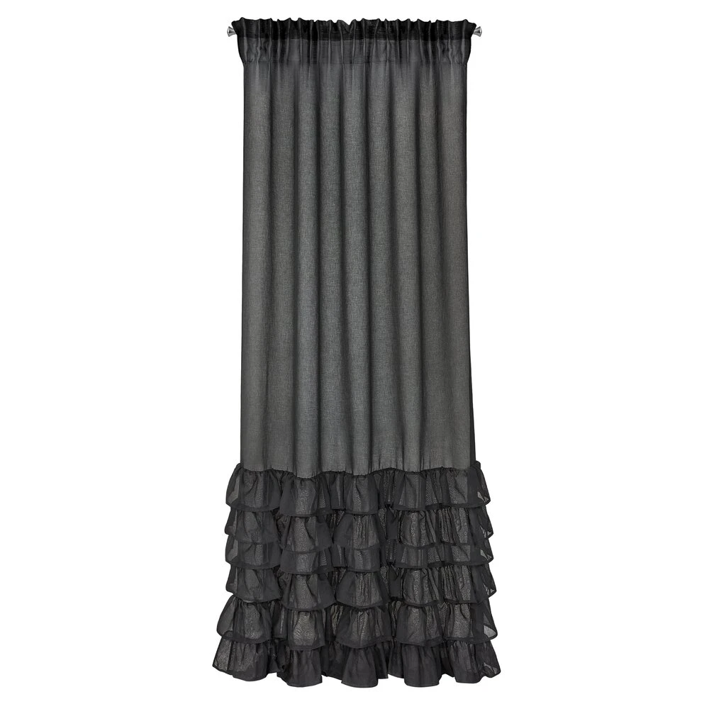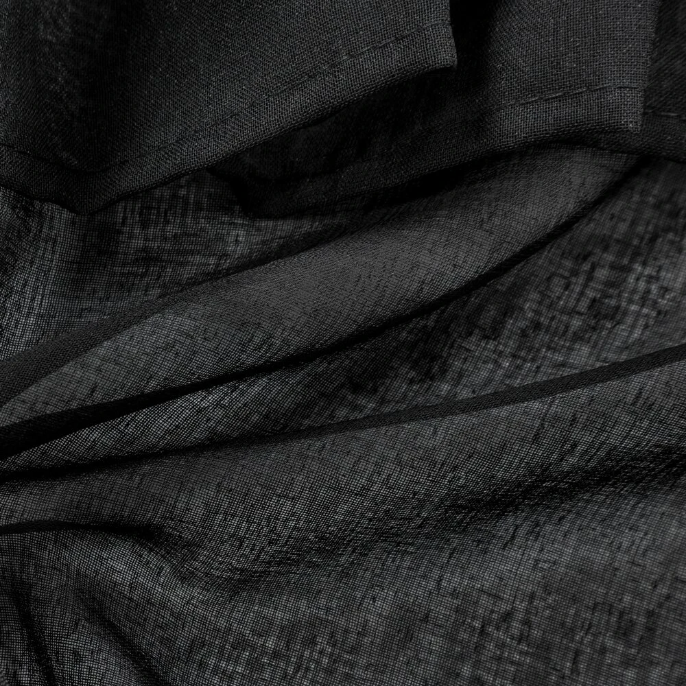 Gładka firana zdobiona falbanami posiadająca taśmę tunelową szerokość: 140 cm, długość: 250 cm, kolor: czarny, Gramatura: 80 GSM, Skład: 100% poliester