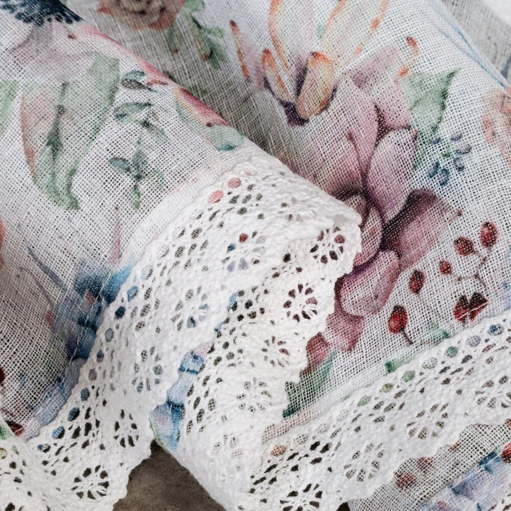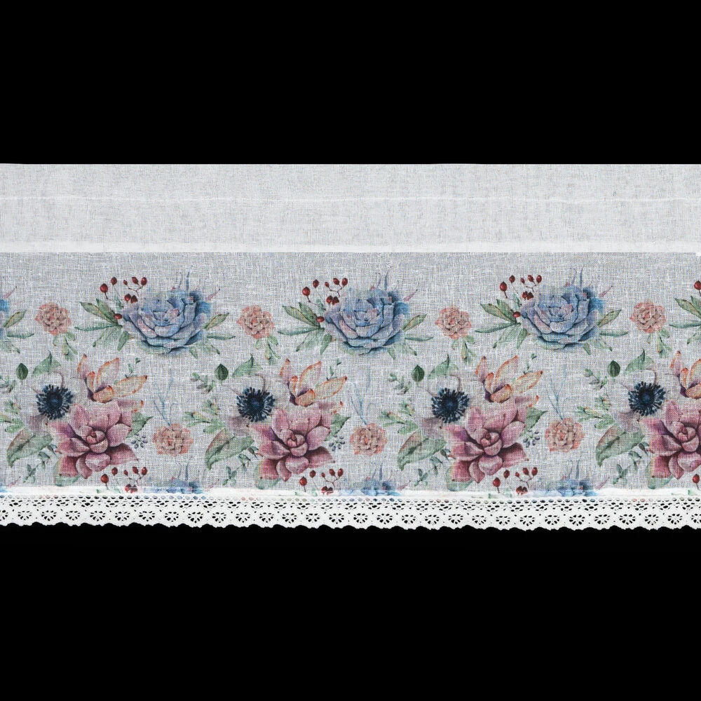 Zazdrostka z nadrukiem zdobiona koronką szerokość: 150 cm, długość: 30 cm, kolor: biały, Gramatura: 110 GSM, Skład: 100% poliester