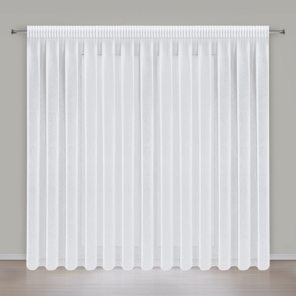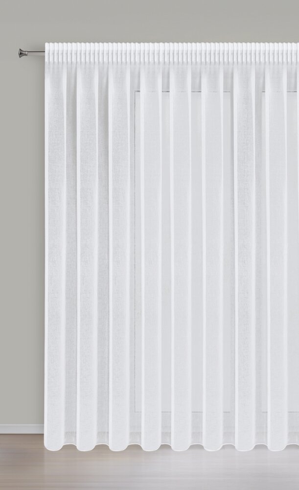 Gładka firana w kolorze klasycznej bieli to ponadczasowa dekoracja okna. Delikatna etamina, z której została uszyta, gwarantuje maksimum prywatności i światła. szerokość: 350 cm, długość: 250 cm, kolor: biały, Gramatura: 50 GSM, Skład: 100% poliester