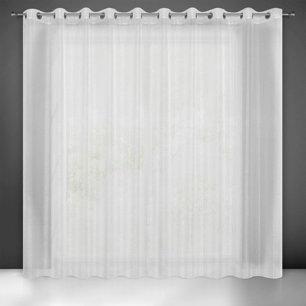 Jednokolorowa, minimalistyczna zasłona z dodatkiem srebrnej nici doskonale rozświetla wnętrze. Prosta w prasowaniu dekoracja okienna. szerokość: 290 cm, długość: 250 cm, kolor: biały, Gramatura: 90 GSM, Skład: 100% poliester