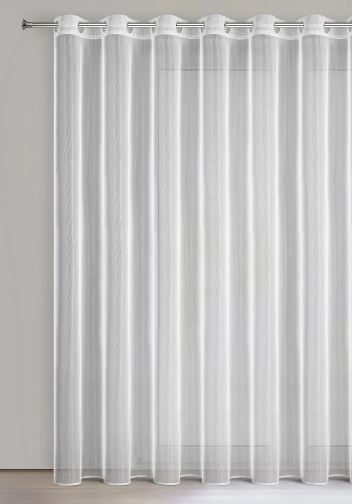 Bardzo delikatna firana o strukturze drobnej, gęstej siateczki. Lśniąca tkanina gwarantuje maksimum poczucia prywatności i przepuszcza światło do wnętrza. szerokość: 400 cm, długość: 250 cm, kolor: biały, Gramatura: 35 GSM, Skład: 100% poliester
