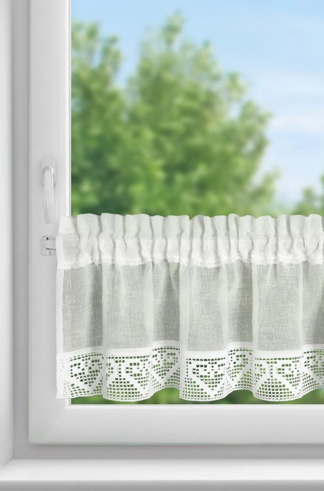 Zazdrostka zdobiona koronką szerokość: 150 cm, długość: 30 cm, kolor: kremowy, Gramatura: 110 GSM, Skład: 100% poliester