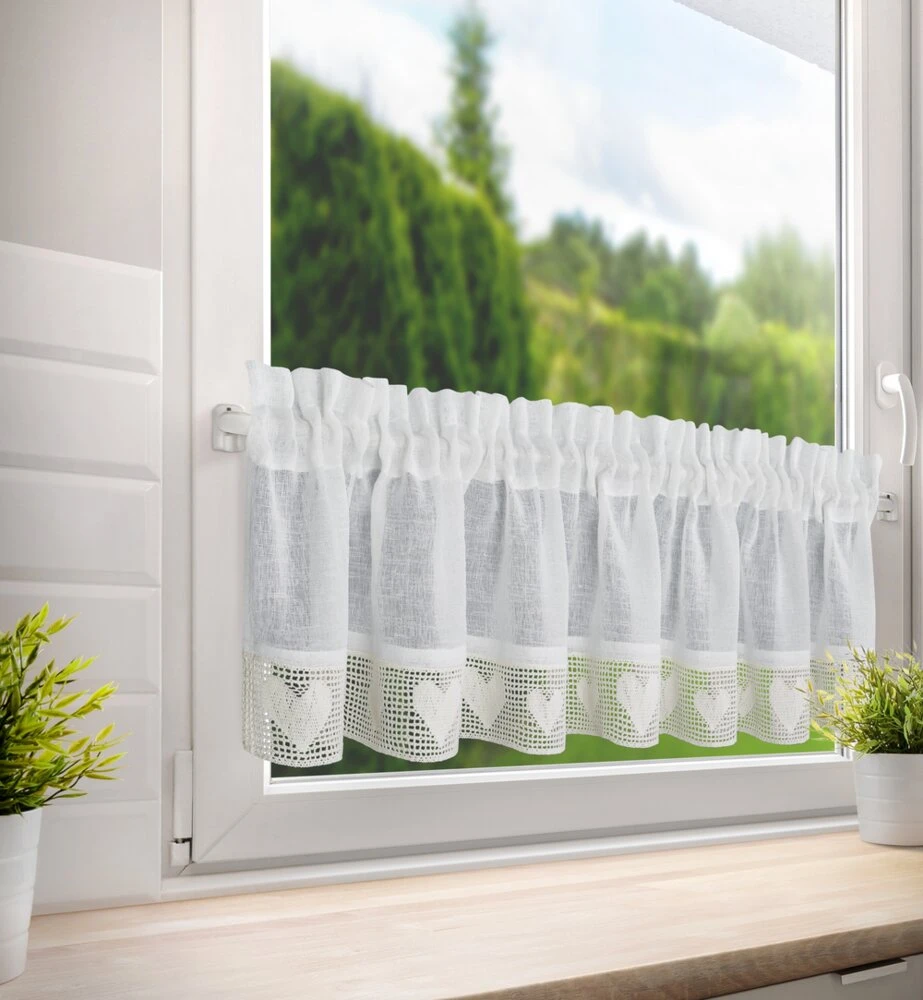 Zazdrostka zdobiona koronką szerokość: 150 cm, długość: 30 cm, kolor: kremowy, Gramatura: 110 GSM, Skład: 100% poliester