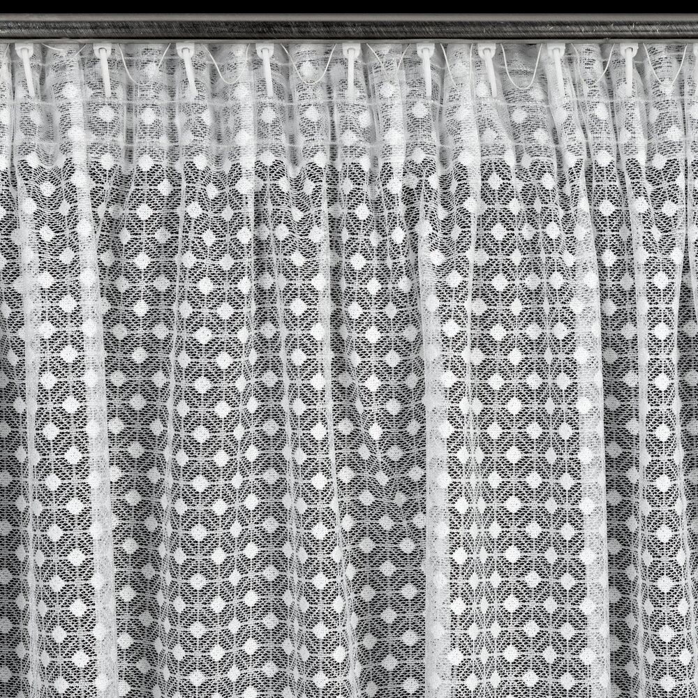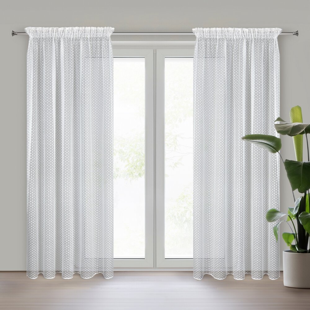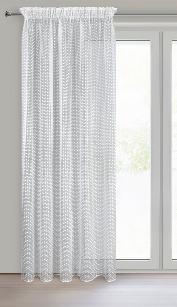 Firana gotowa żakardowa zdobiona transparentną nicią szerokość: 140 cm, długość: 270 cm, kolor: biały, Gramatura: 125 GSM, Skład: 100% poliester