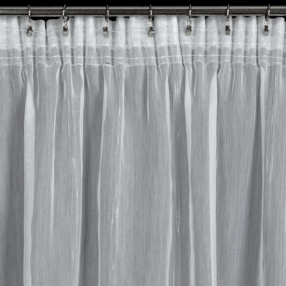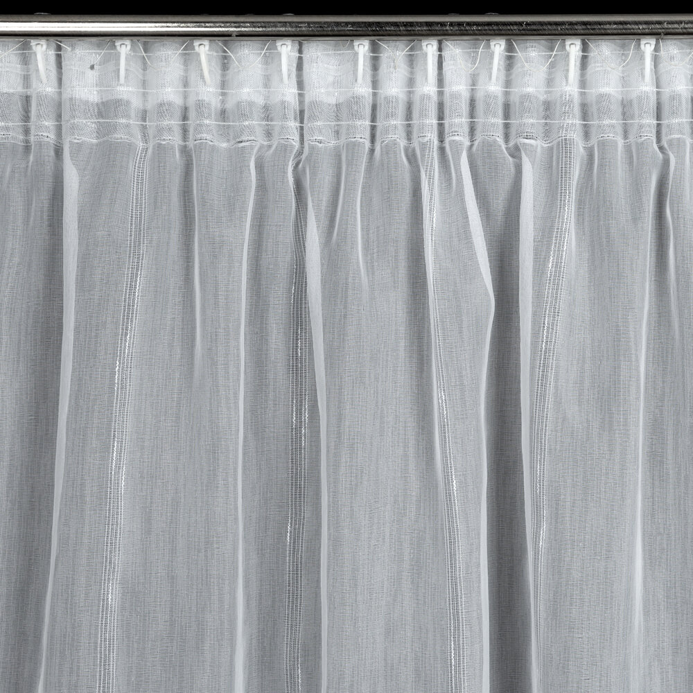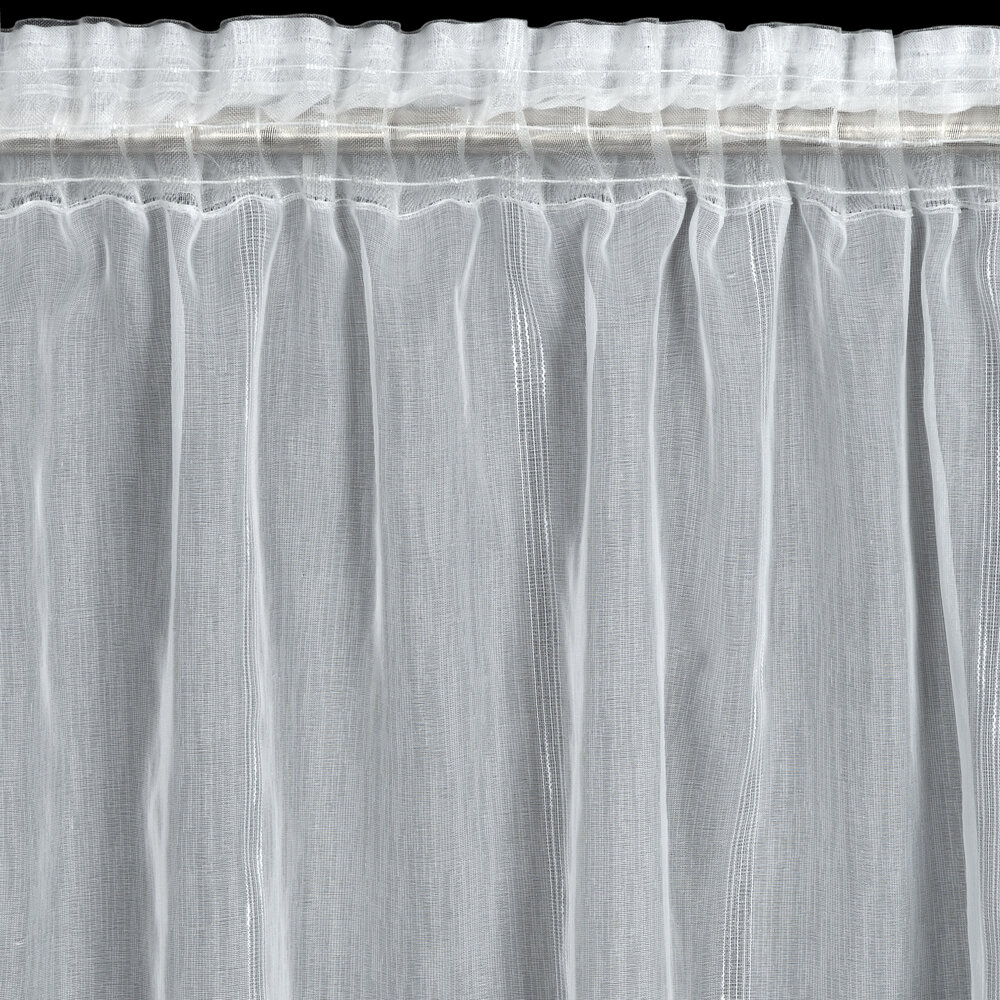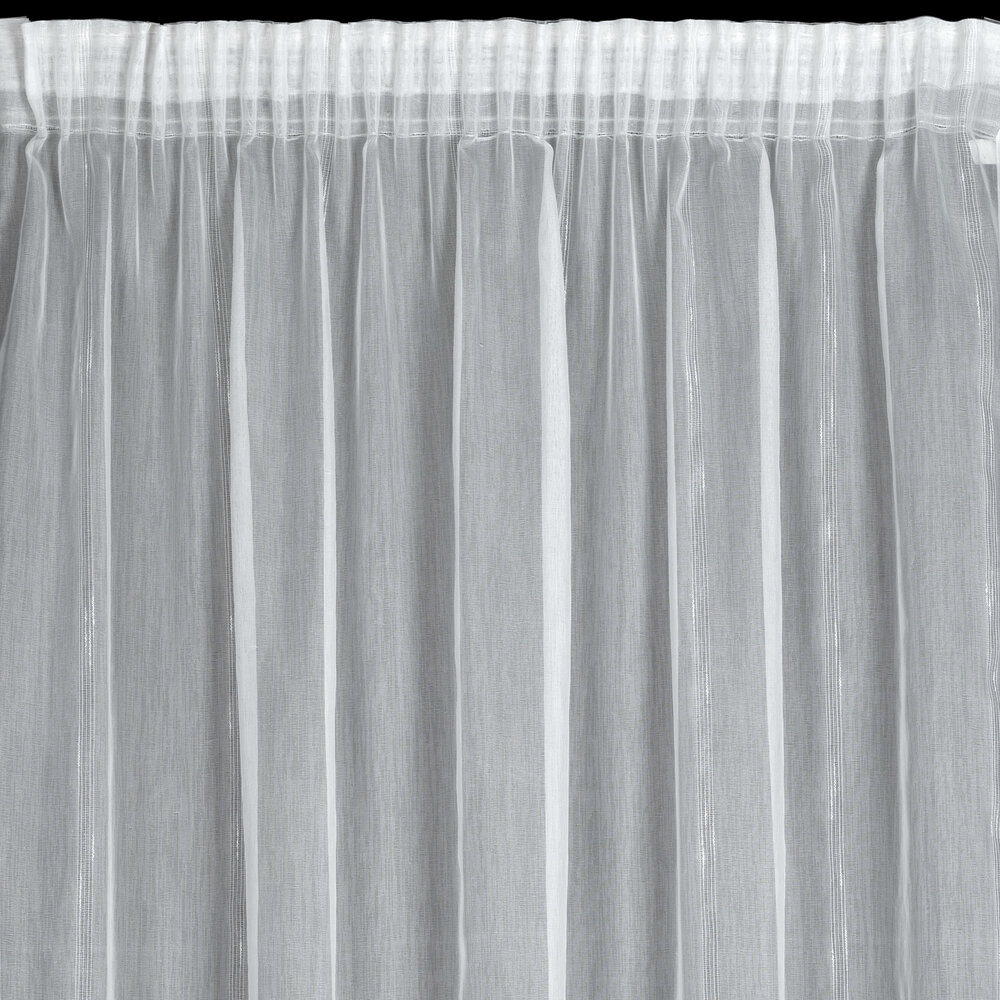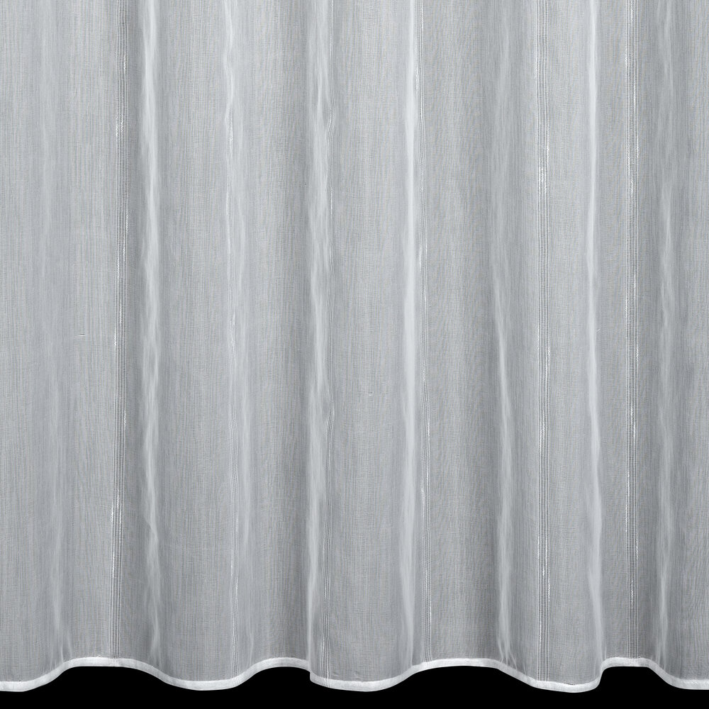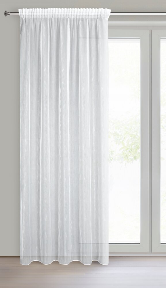 Firana gotowa o strukturze deszczyku z błyszczącą nicią szerokość: 140 cm, długość: 280 cm, kolor: biały, Gramatura: 70 GSM, Skład: 100% poliester