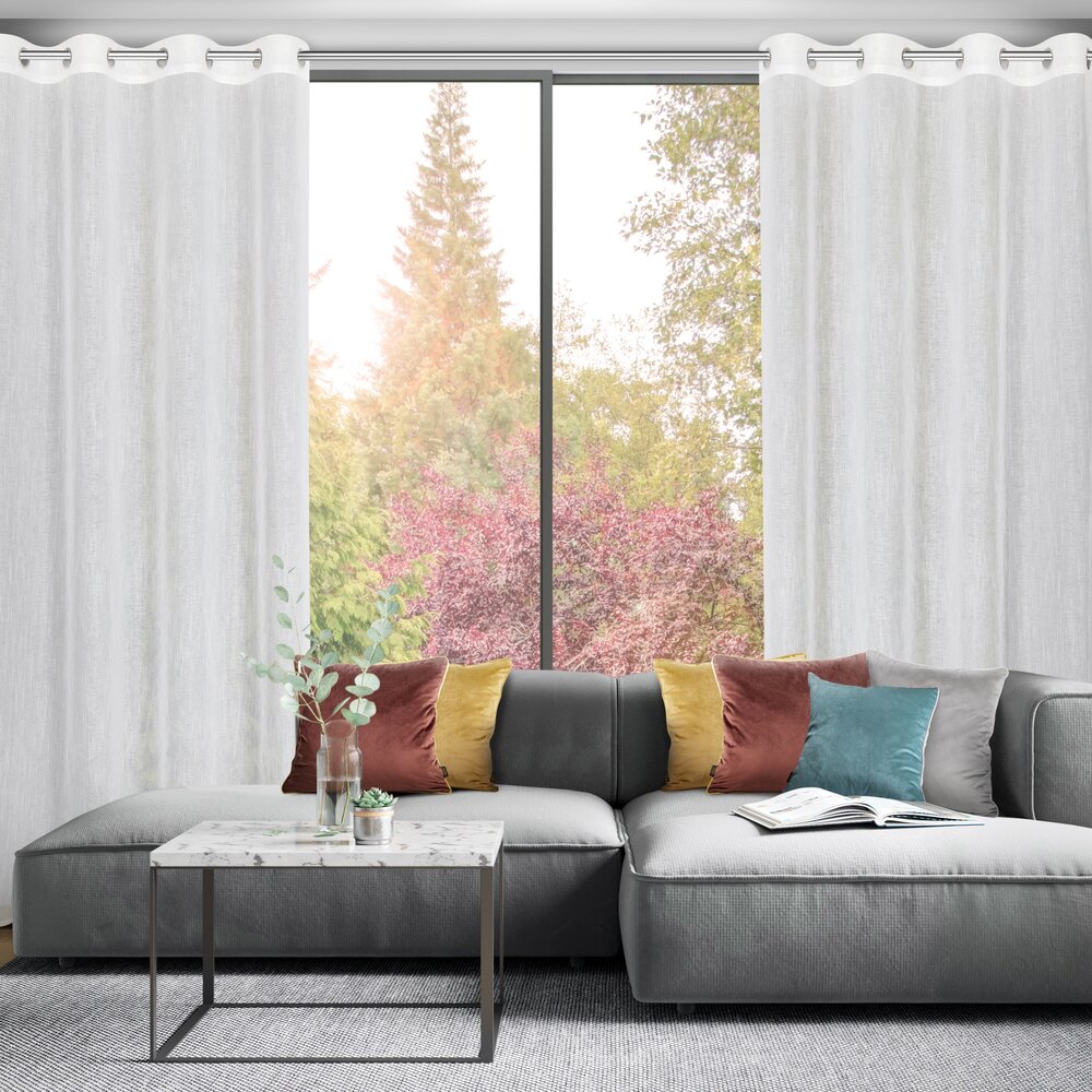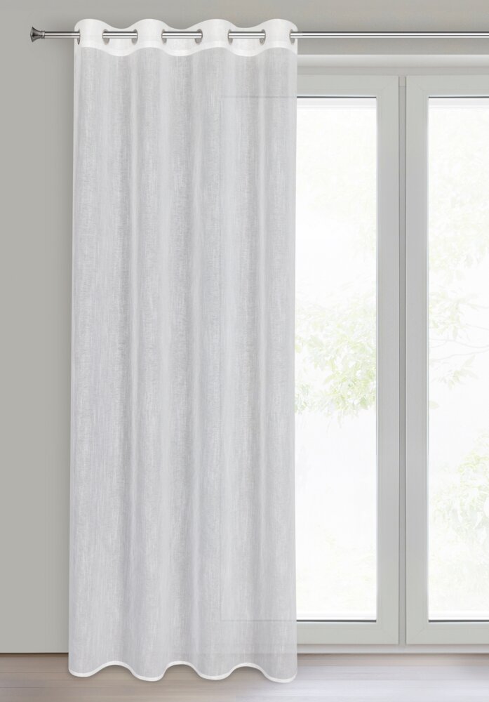 Firana gotowa o strukturze deszczyku z delikatną błyszcząca nicią szerokość: 140 cm, długość: 250 cm, kolor: biały, Gramatura: 70 GSM, Skład: 100% poliester
