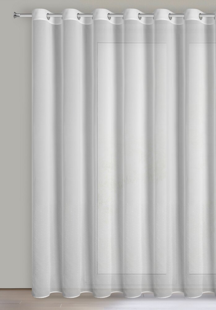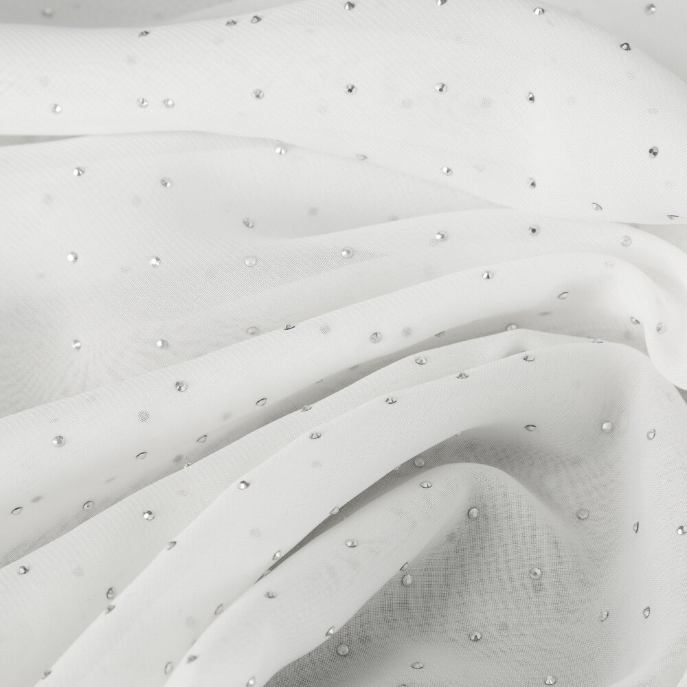 Firana gotowa szyfonowa zdobiona diamencikami szerokość: 350 cm, długość: 250 cm, kolor: biały, Gramatura: 60 GSM, Skład: 100% poliester
