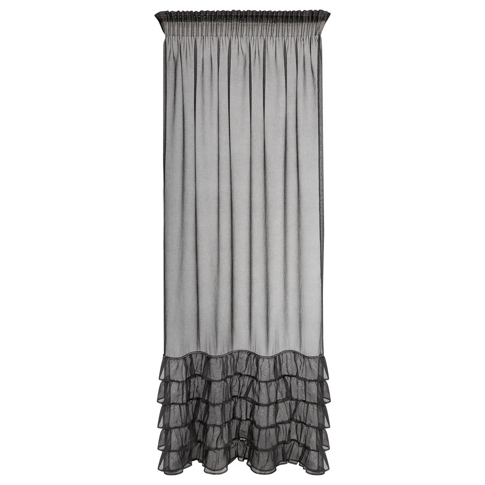 Firana gotowa z falbanami i ozdobnymi cyrkoniami szerokość: 140 cm, długość: 250 cm, kolor: czarny, Gramatura: 70 GSM, Skład: 100% poliester