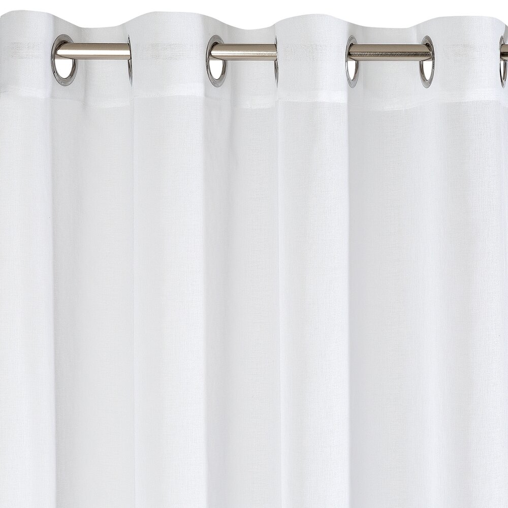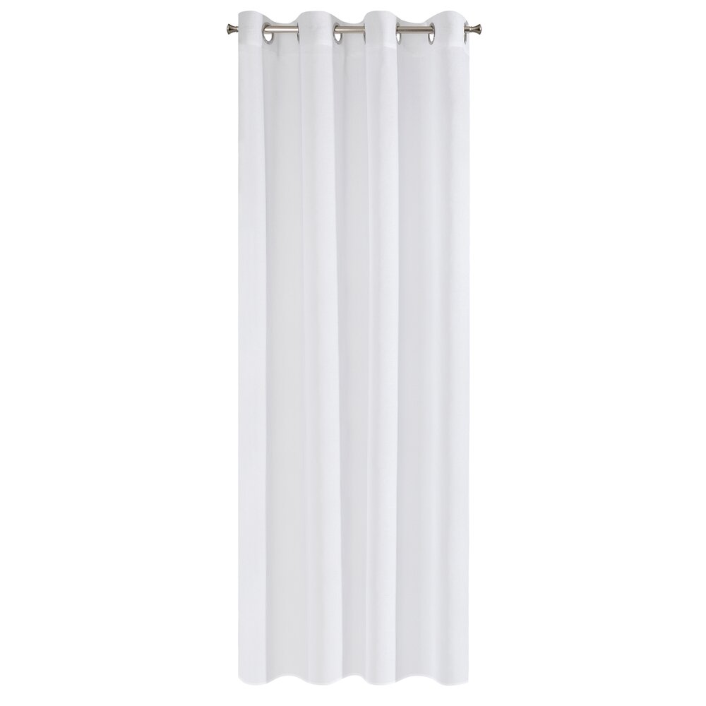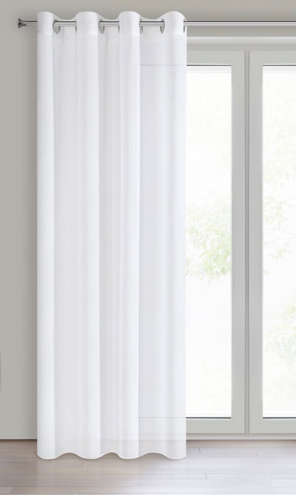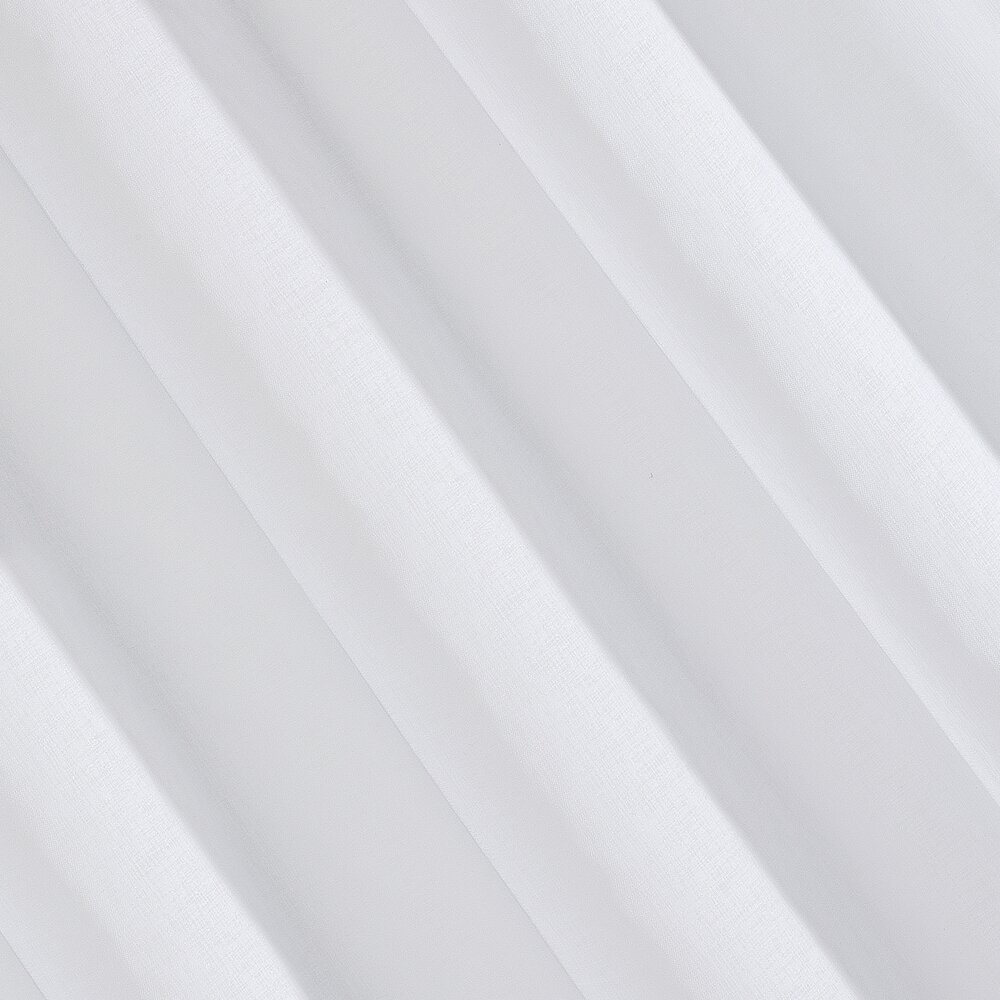 Lekka firana ze zwiewnej tkaniny poliestrowej z dodatkiem przejrzystej nitki, dekorowana buklą. Miękka dekoracja okienna jest prosta w prasowaniu. Szybko schnie szerokość: 140 cm, długość: 250 cm, kolor: biały, Gramatura: 65 GSM, Skład: 100% poliester
