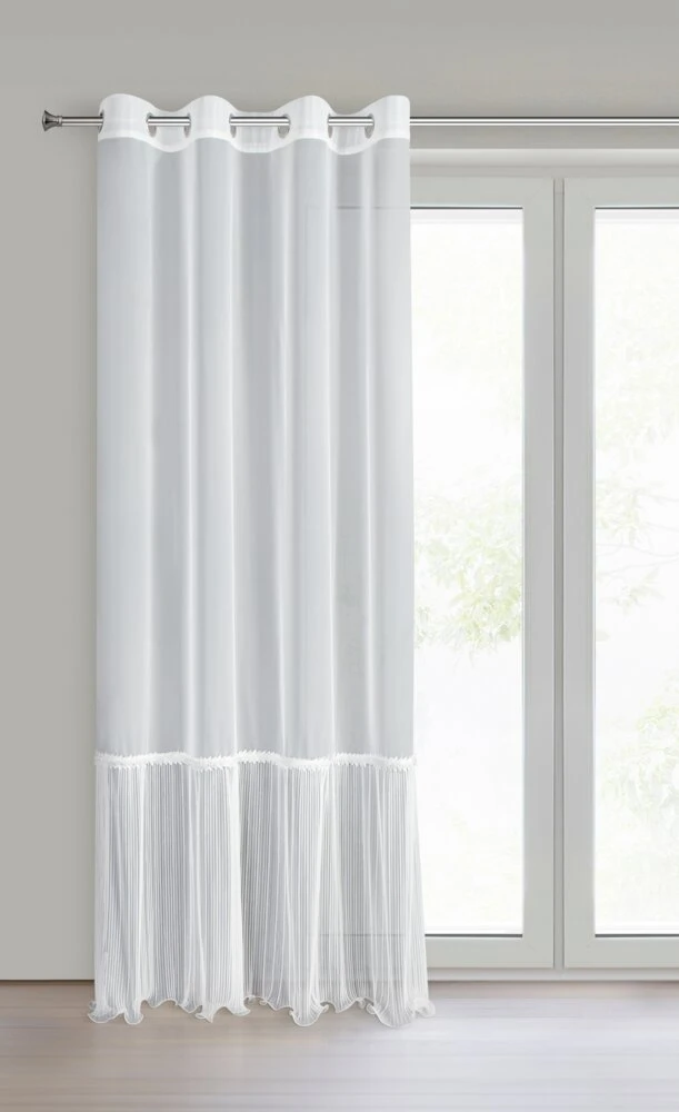 Firana gotowa zdobiona aplikacją szerokość: 140 cm, długość: 250 cm, kolor: biały, Skład: 100% poliester