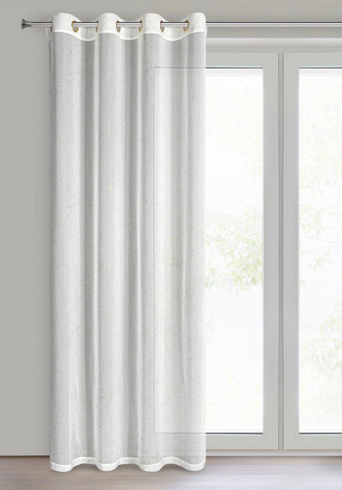 Firana gotowa szyfonowa z błyszczącym nadrukiem szerokość: 140 cm, długość: 250 cm, kolor: biały, Gramatura: 85 GSM, Skład: 100% poliester