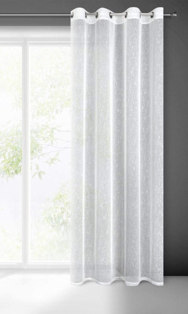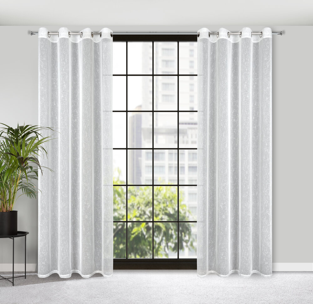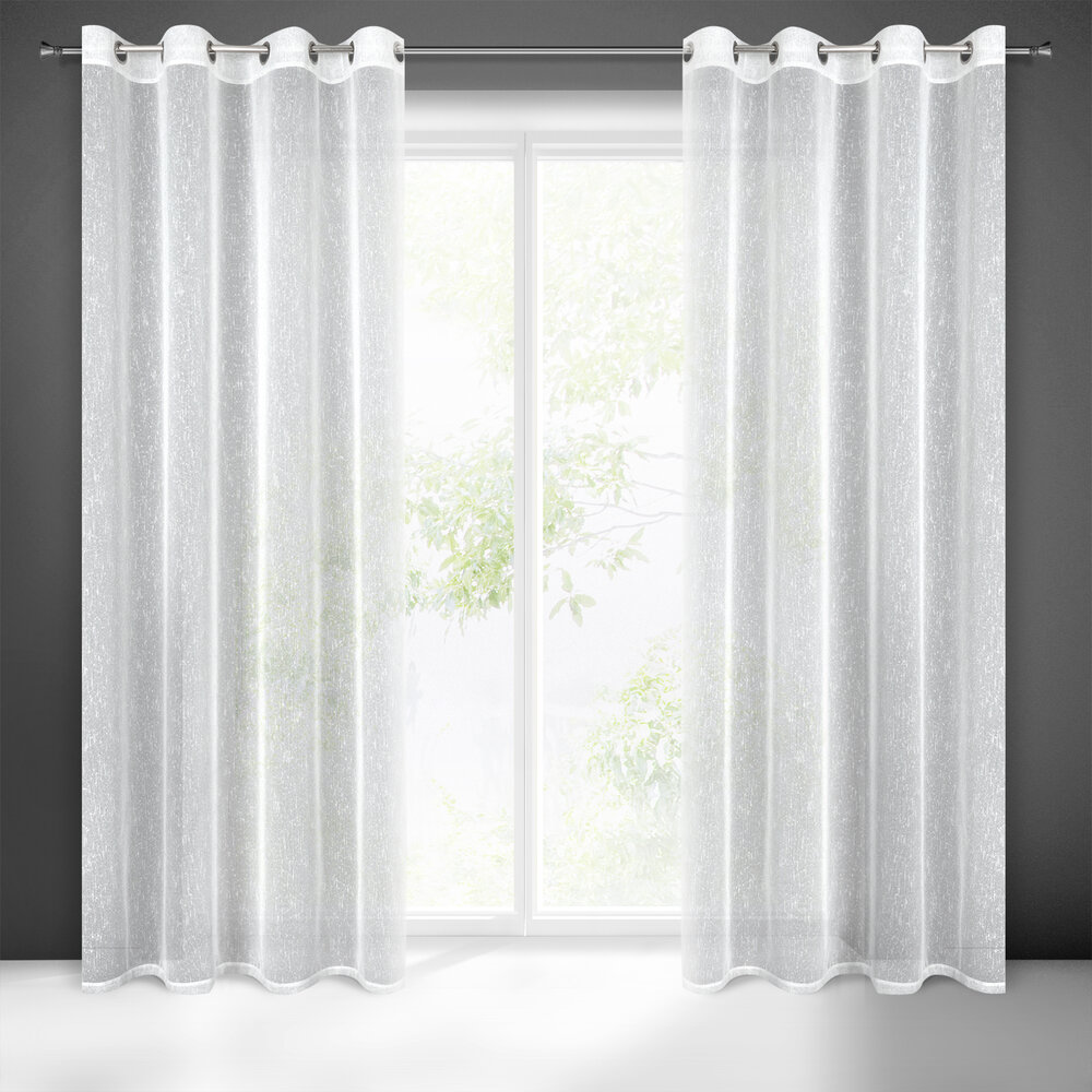Firana gotowa o strukturze deszczyku zdobiona srebrną nicią szerokość: 140 cm, długość: 250 cm, kolor: biały, Gramatura: 80 GSM, Skład: 100% poliester