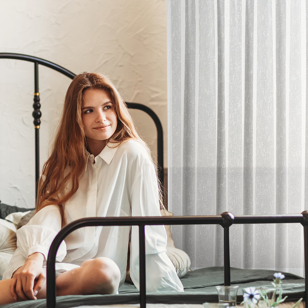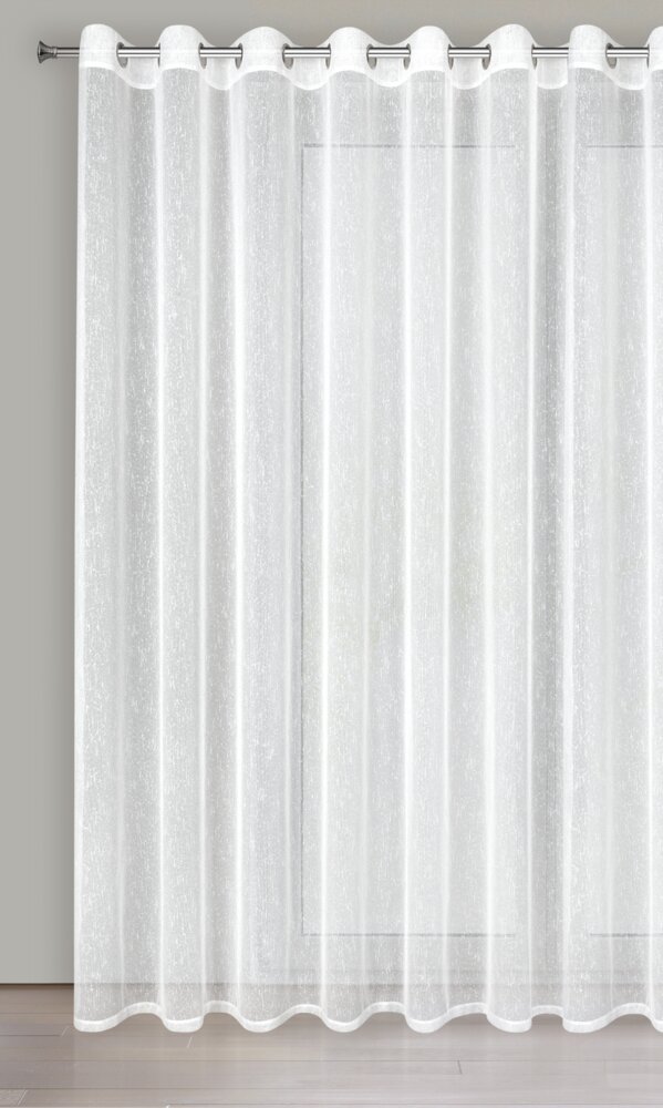 Firana gotowa o strukturze deszczyku zdobiona srebrną nicią szerokość: 300 cm, długość: 250 cm, kolor: biały, Gramatura: 80 GSM, Skład: 100% poliester