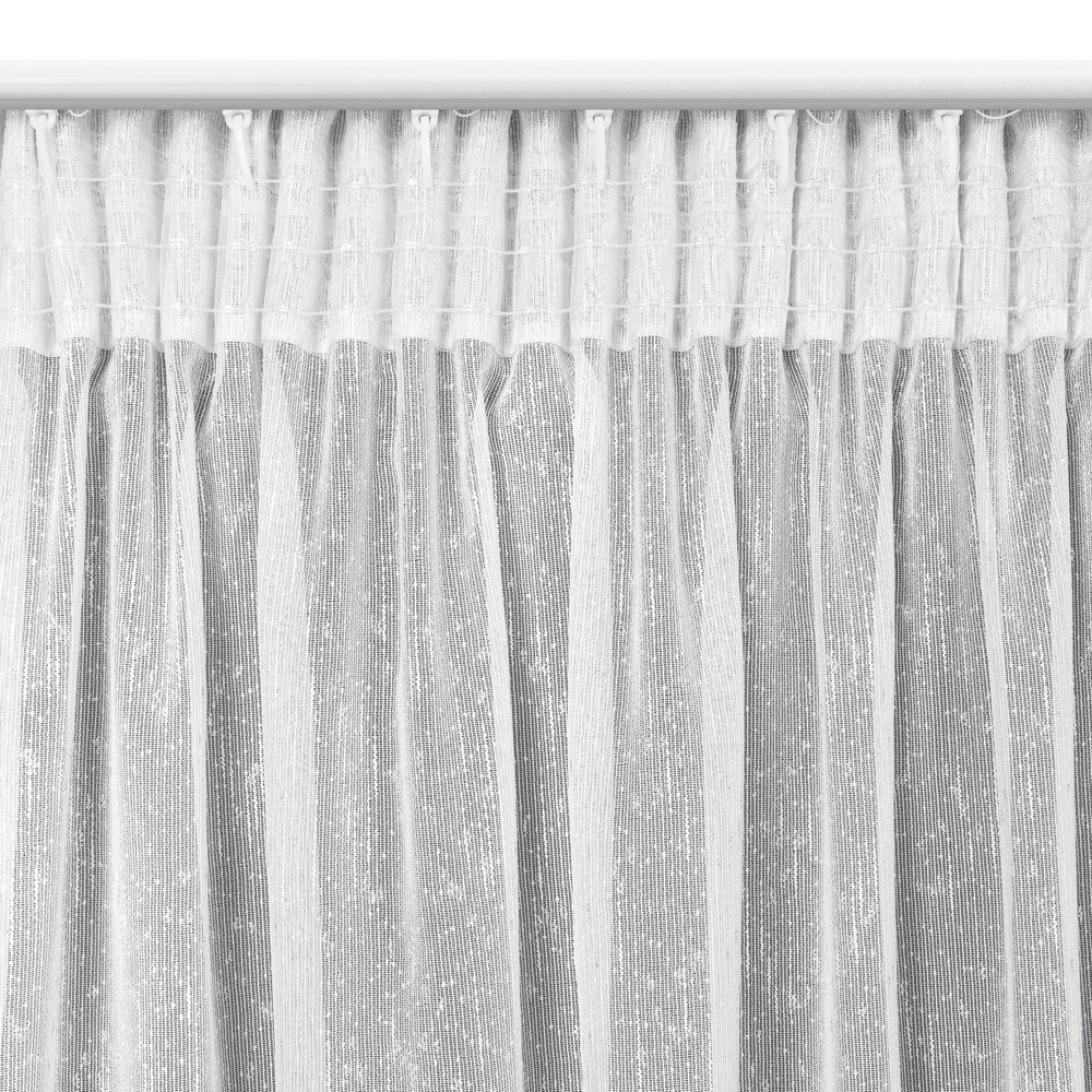 Firana gotowa o strukturze deszczyku zdobiona srebrną nicią szerokość: 300 cm, długość: 250 cm, kolor: biały, Gramatura: 80 GSM, Skład: 100% poliester