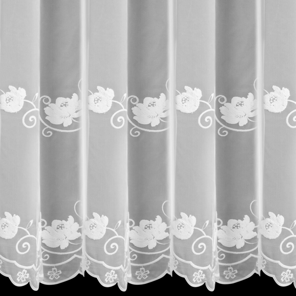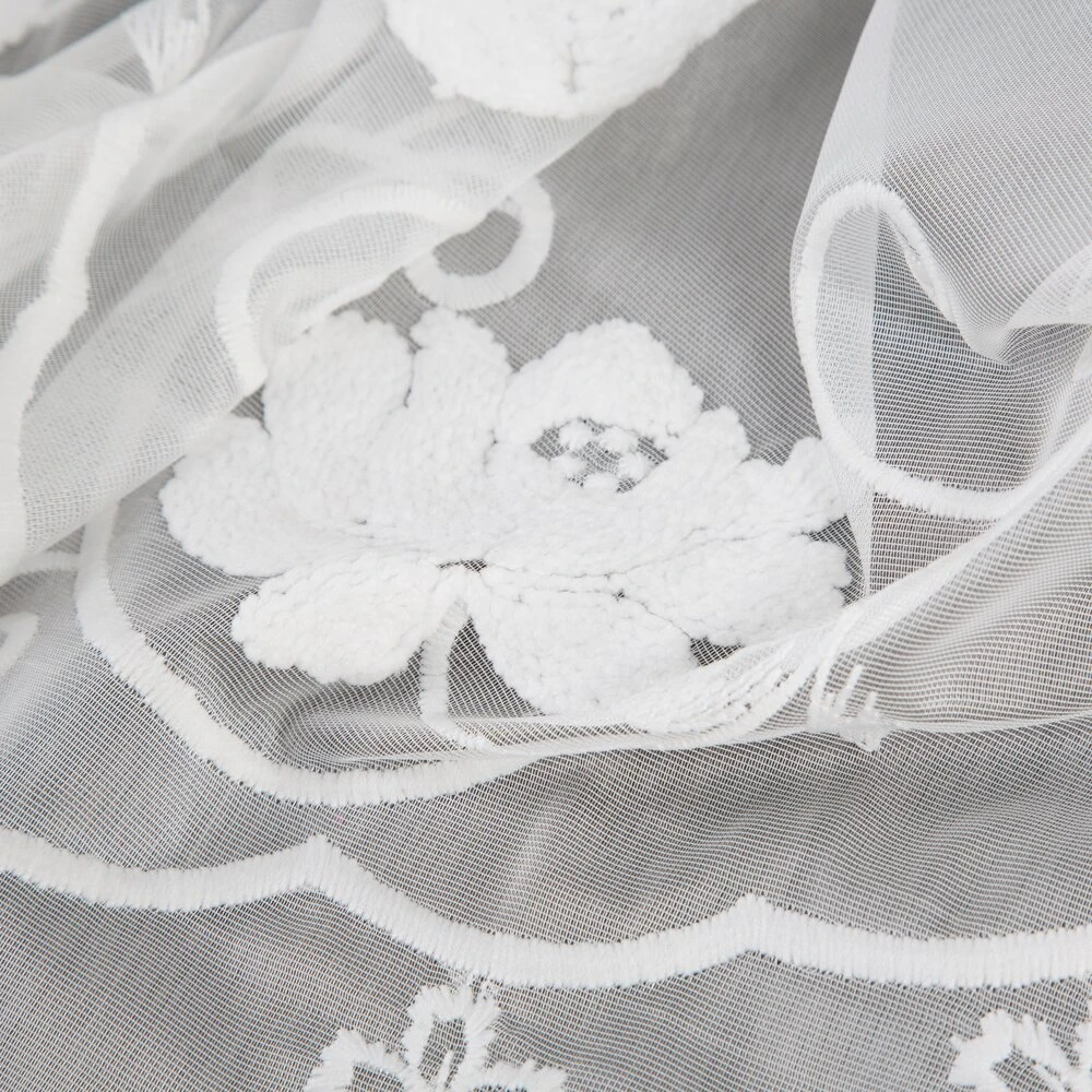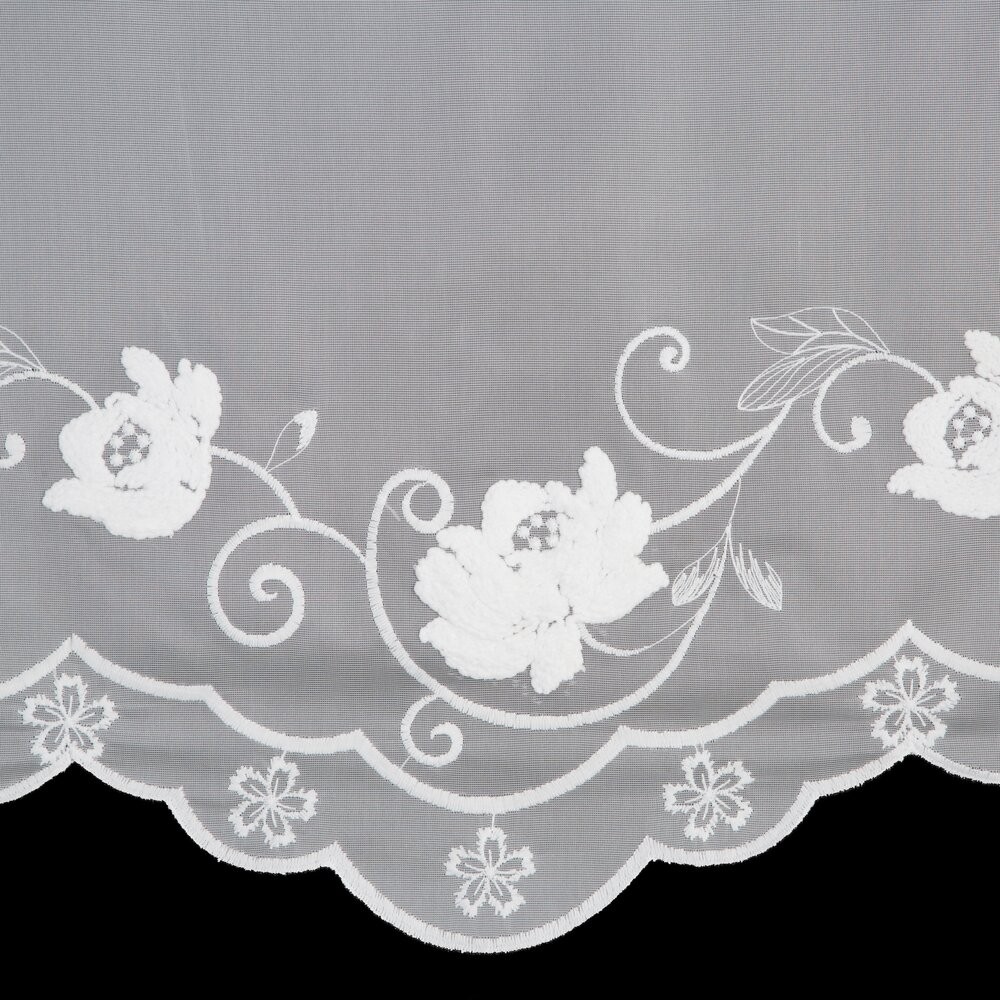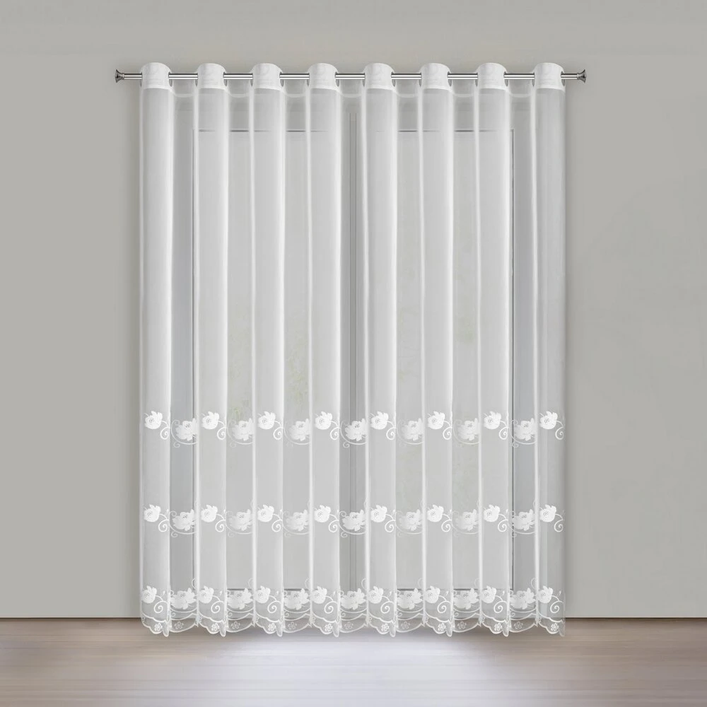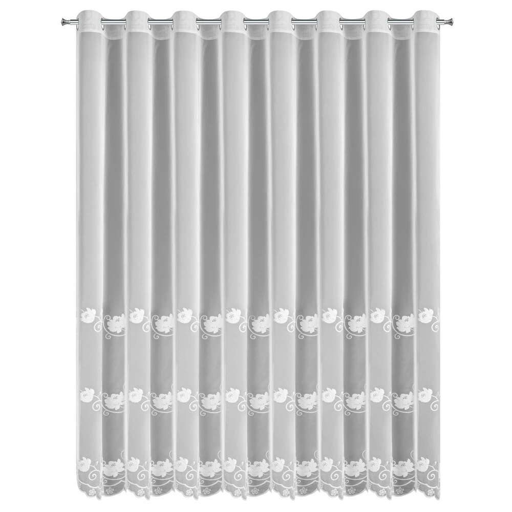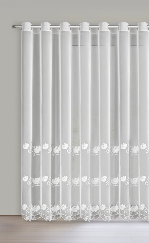 Firana gotowa zdobiona haftem szerokość: 350 cm, długość: 250 cm, kolor: biały, Skład: 100% poliester
