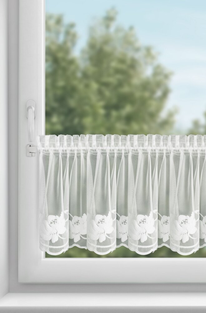 Zazdrostka gotowa zdobiona haftem szerokość: 150 cm, długość: 40 cm, kolor: biały, Skład: 100% poliester