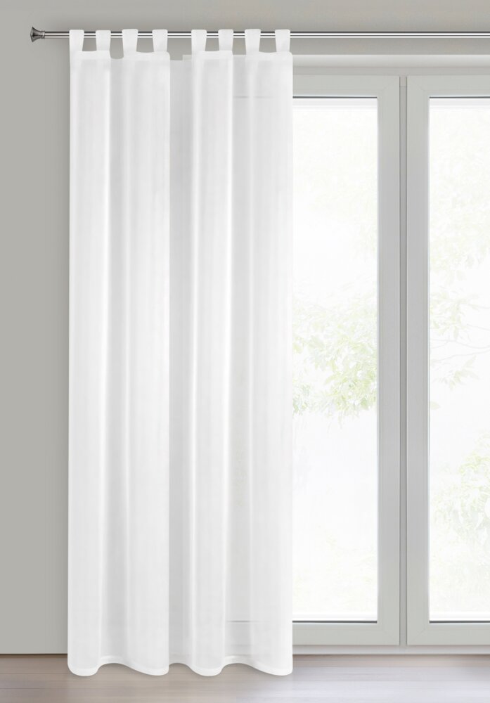 Klasyczna, długa, krótka firana uszyta z gładkiego, miękkiego woalu. Subtelna tkanina łatwo się pracuje a po upięciu układa się w miekkie fale. szerokość: 140 cm, długość: 250 cm, kolor: biały, Skład: 100% poliester