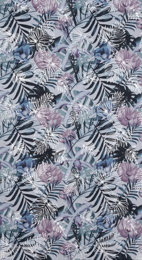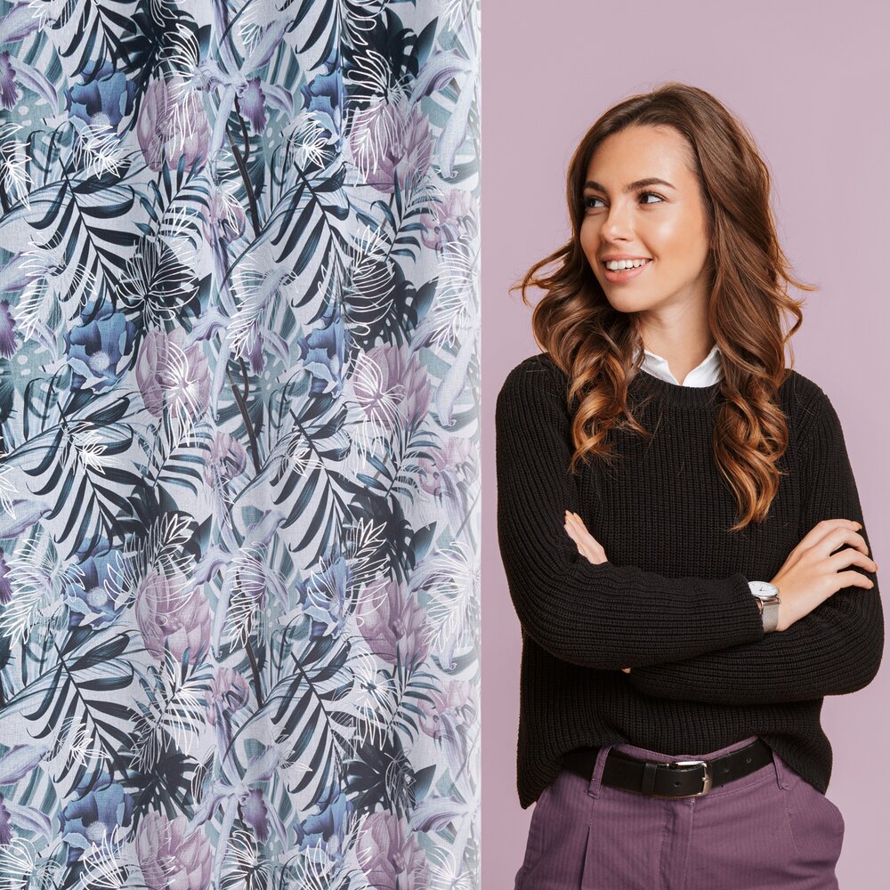 Zasłona z motywami botanicznymi z błyszczącym nadrukiem szerokość: 140 cm, długość: 250 cm, kolor: biały, Gramatura: 80 GSM, Skład: 100% poliester