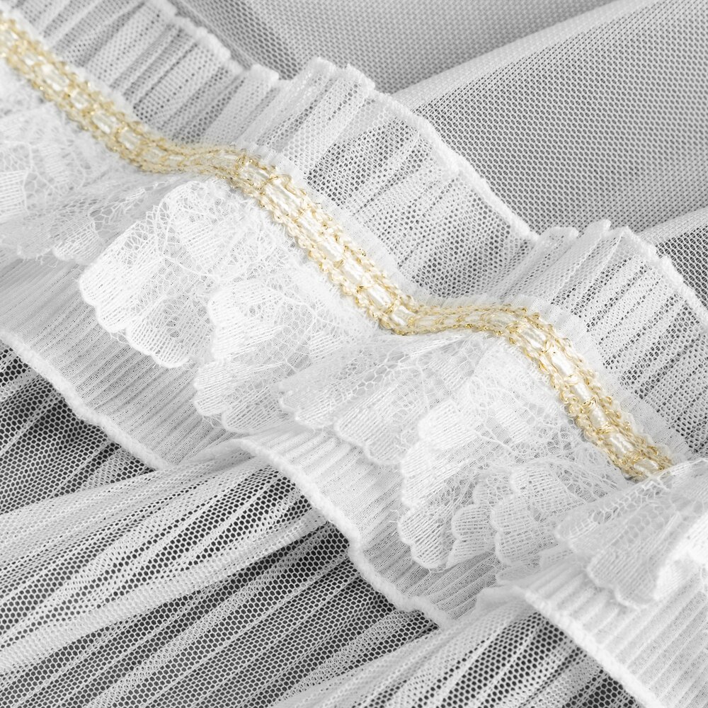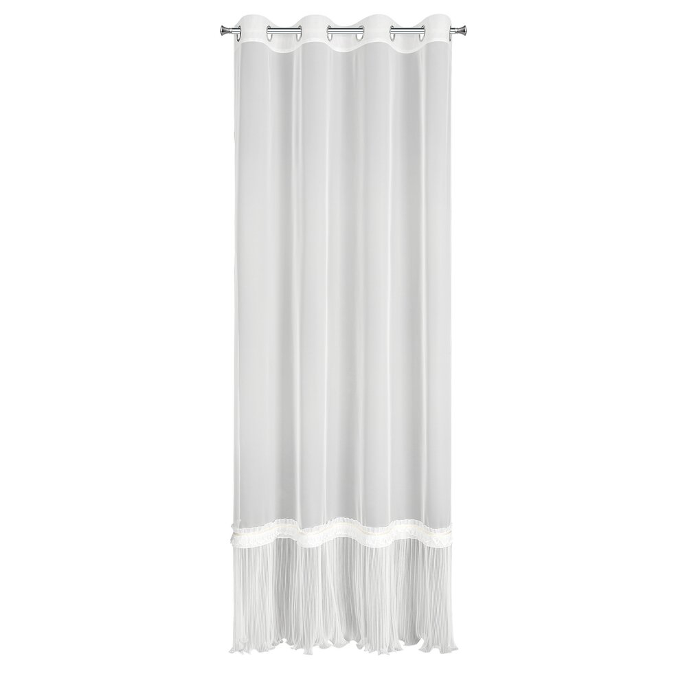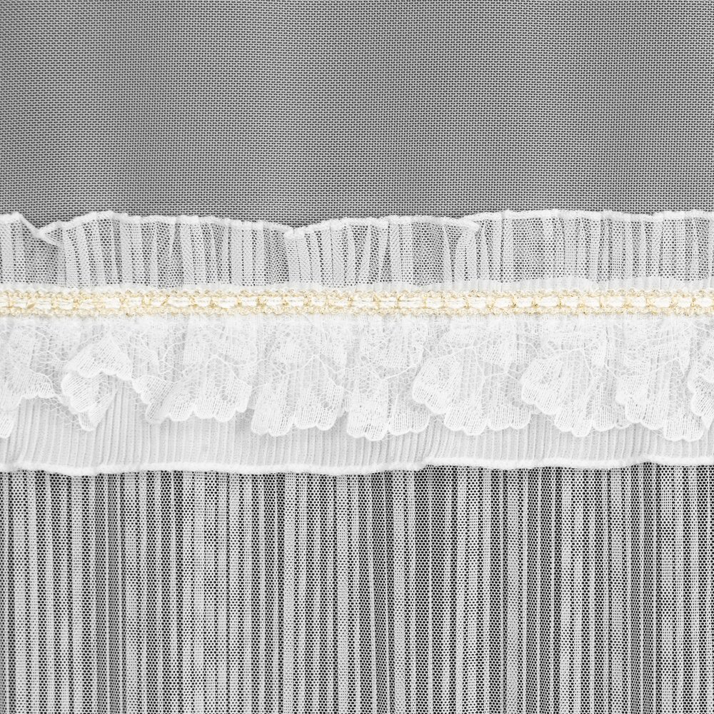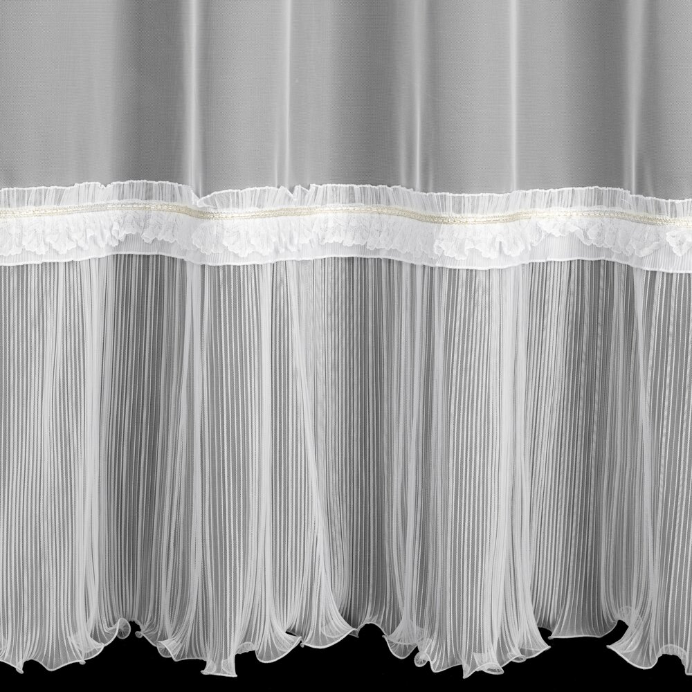 Firana gotowa zdobiona falbanką szerokość: 140 cm, długość: 250 cm, kolor: biały, Gramatura: 65 GSM, Skład: 100% poliester