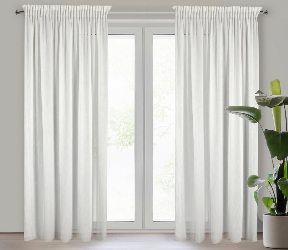 Firana gotowa z efektem garbowania szerokość: 135 cm, długość: 270 cm, kolor: biały, Skład: 100% poliester