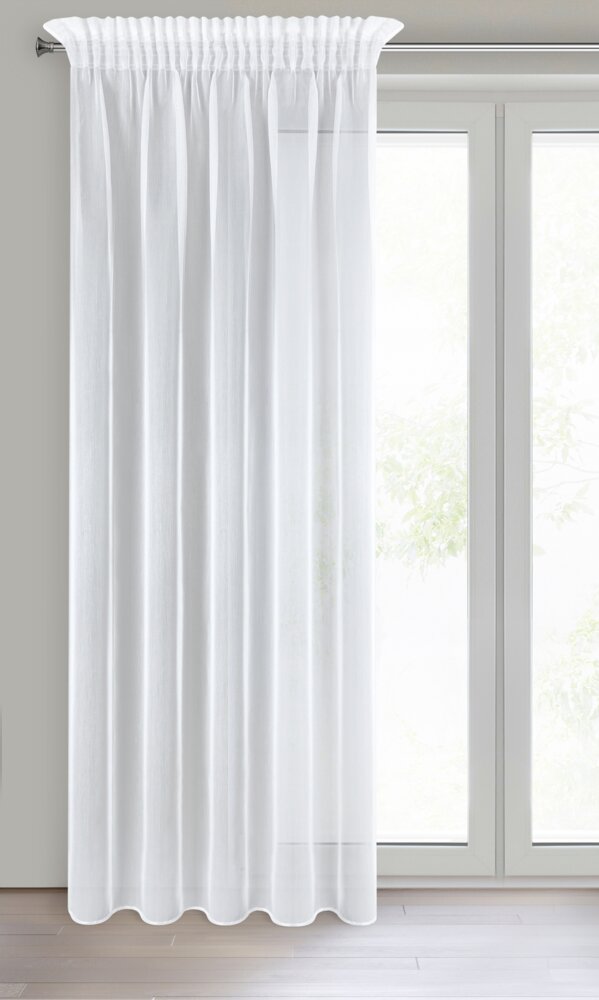Firana gotowa gładka błyszcząca szerokość: 140 cm, długość: 270 cm, kolor: biały, Gramatura: 50 GSM, Skład: 100% poliester