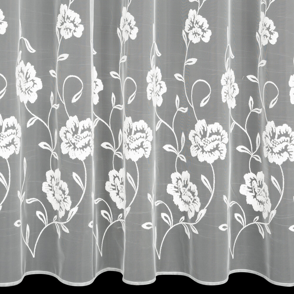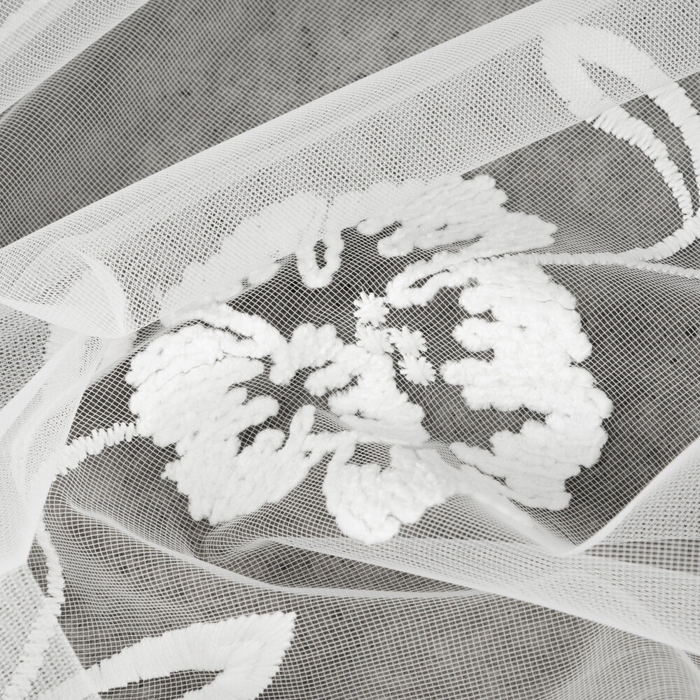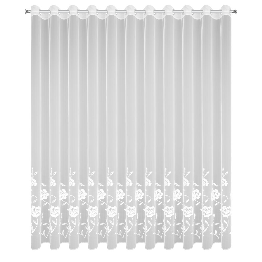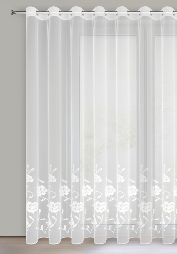 Firana gotowa zdobiona haftem szerokość: 350 cm, długość: 250 cm, kolor: biały, Gramatura: 70 GSM, Skład: 100% poliester