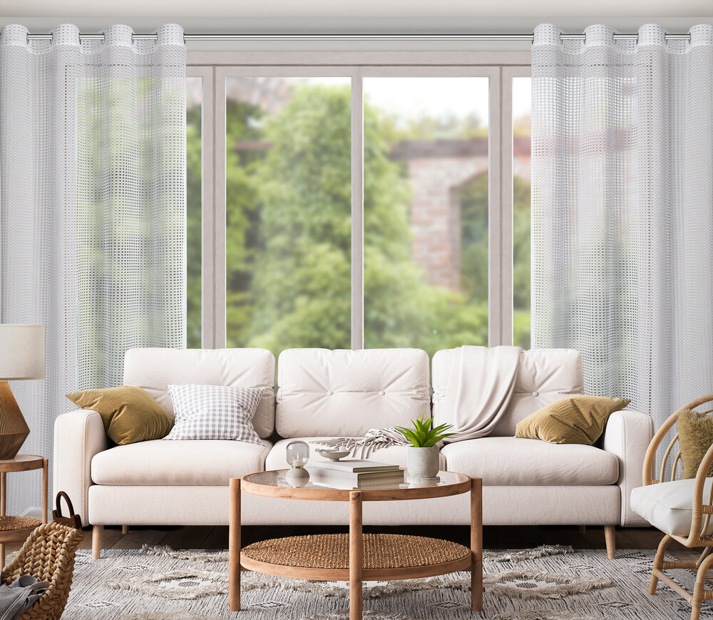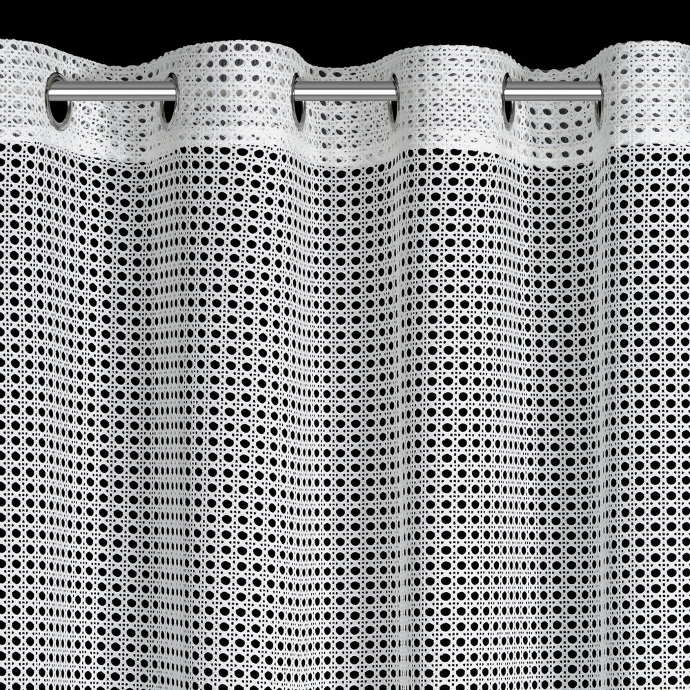 Firana gotowa o strukturze siatki szerokość: 140 cm, długość: 250 cm, kolor: biały, Gramatura: 120 GSM, Skład: 100% poliester