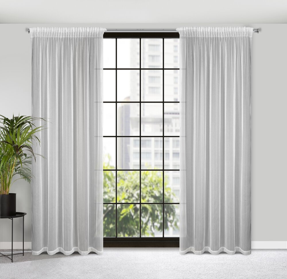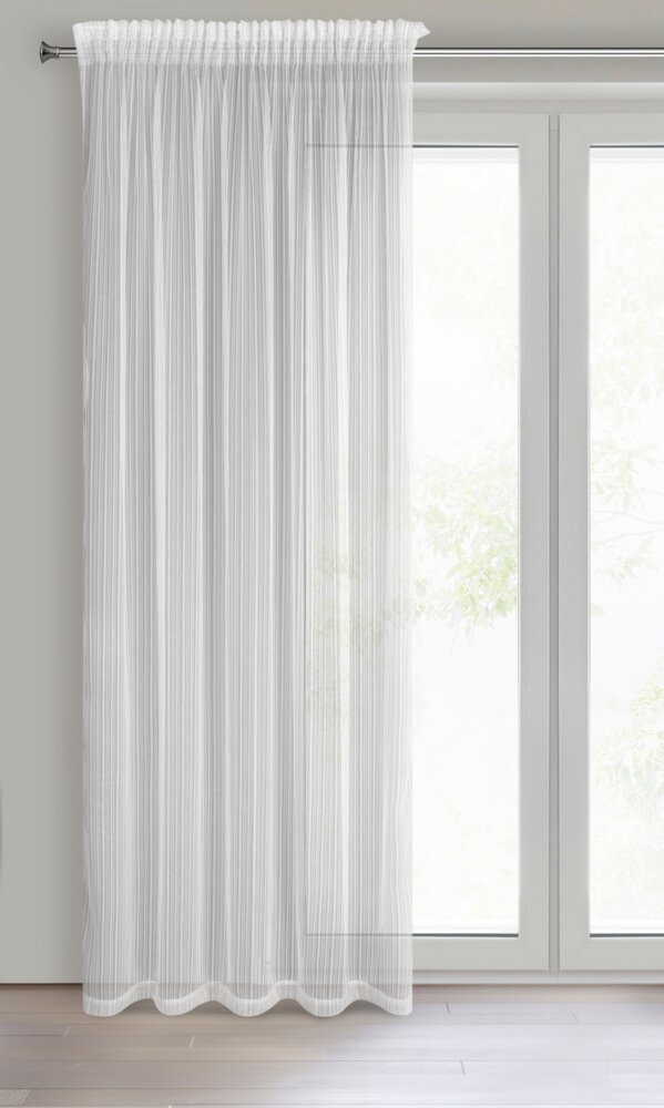 Firana gotowa z błyszczącą nicią szerokość: 140 cm, długość: 270 cm, kolor: biały, Gramatura: 55 GSM, Skład: 100% poliester
