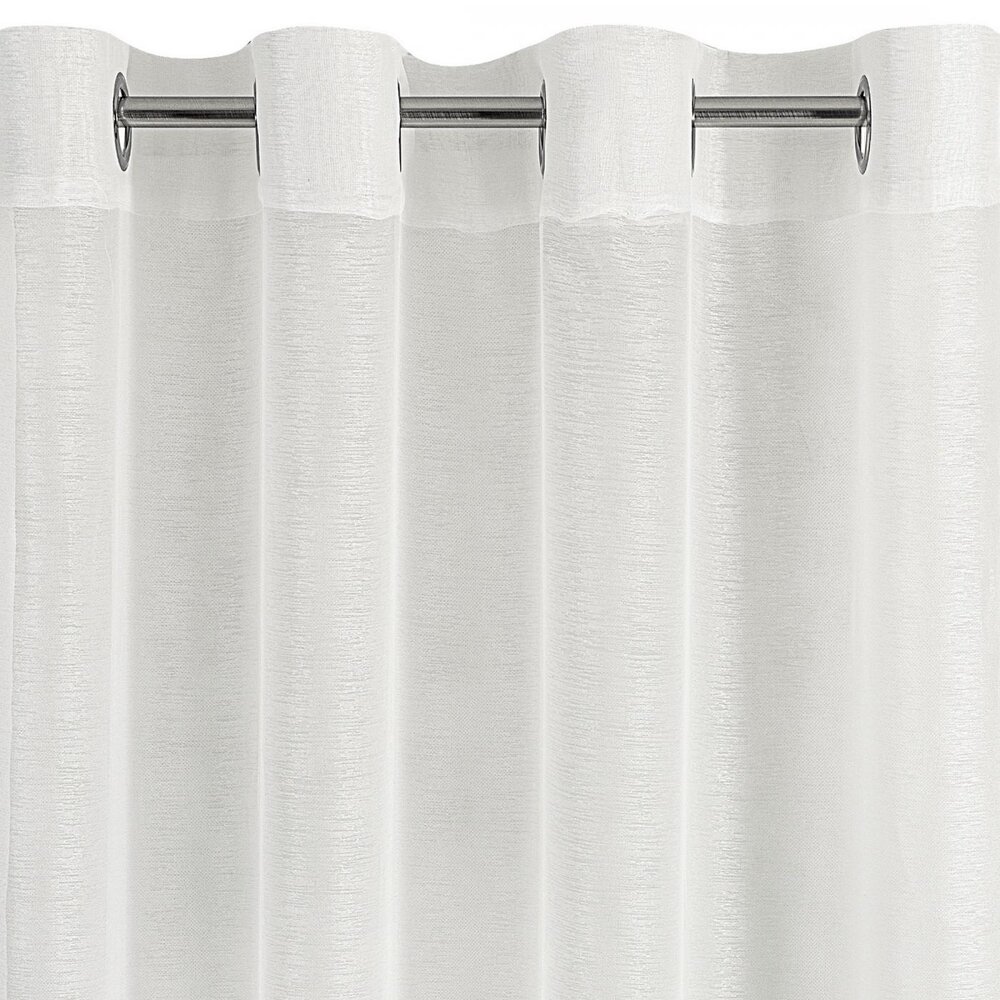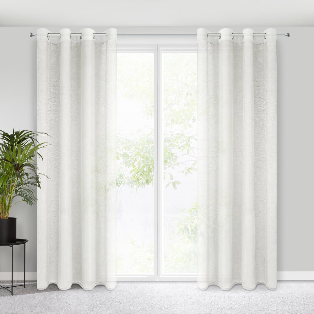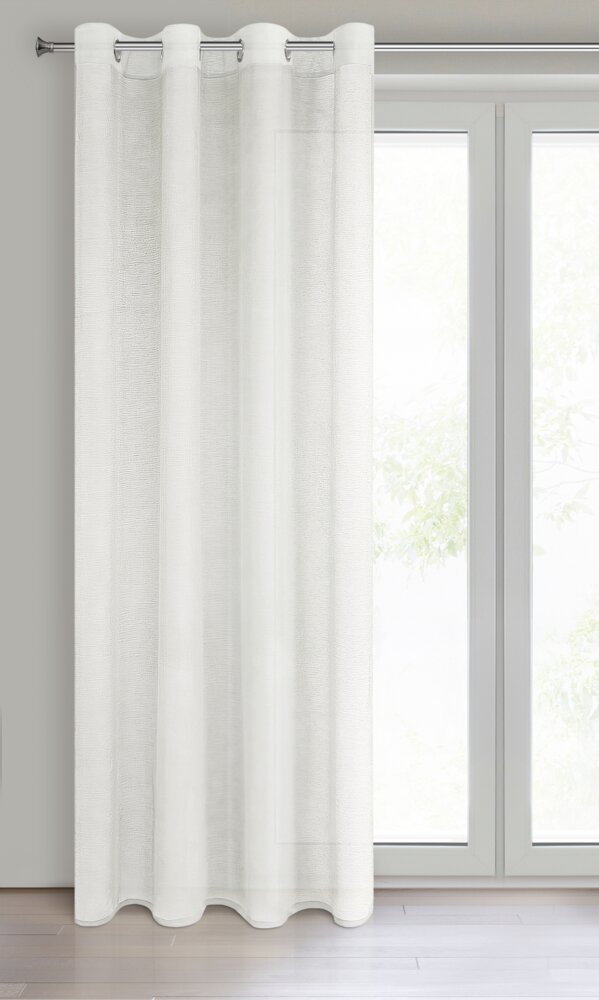 Delikatna firana uszyta z tkaniny o strukturze drobnego deszczyku doskonale przepuszcza światło. Łatwa w prasowaniu i praniu dekoracja. Wzór poziomy. szerokość: 140 cm, długość: 250 cm, kolor: kremowy, Gramatura: 50 GSM, Skład: 100% poliester