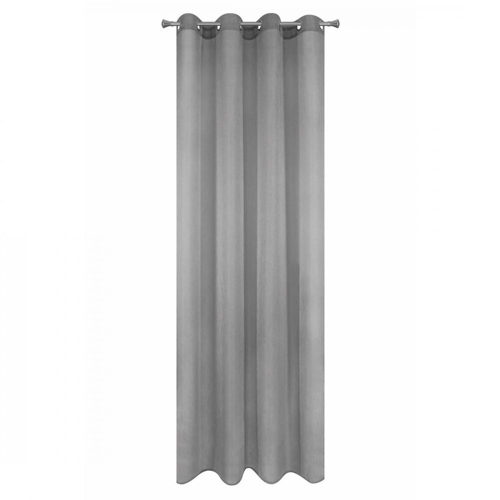 Delikatna firana uszyta z tkaniny o strukturze drobnego deszczyku doskonale przepuszcza światło. Łatwa w prasowaniu i praniu dekoracja. Wzór poziomy. szerokość: 140 cm, długość: 250 cm, kolor: stalowy, Gramatura: 50 GSM, Skład: 100% poliester
