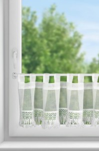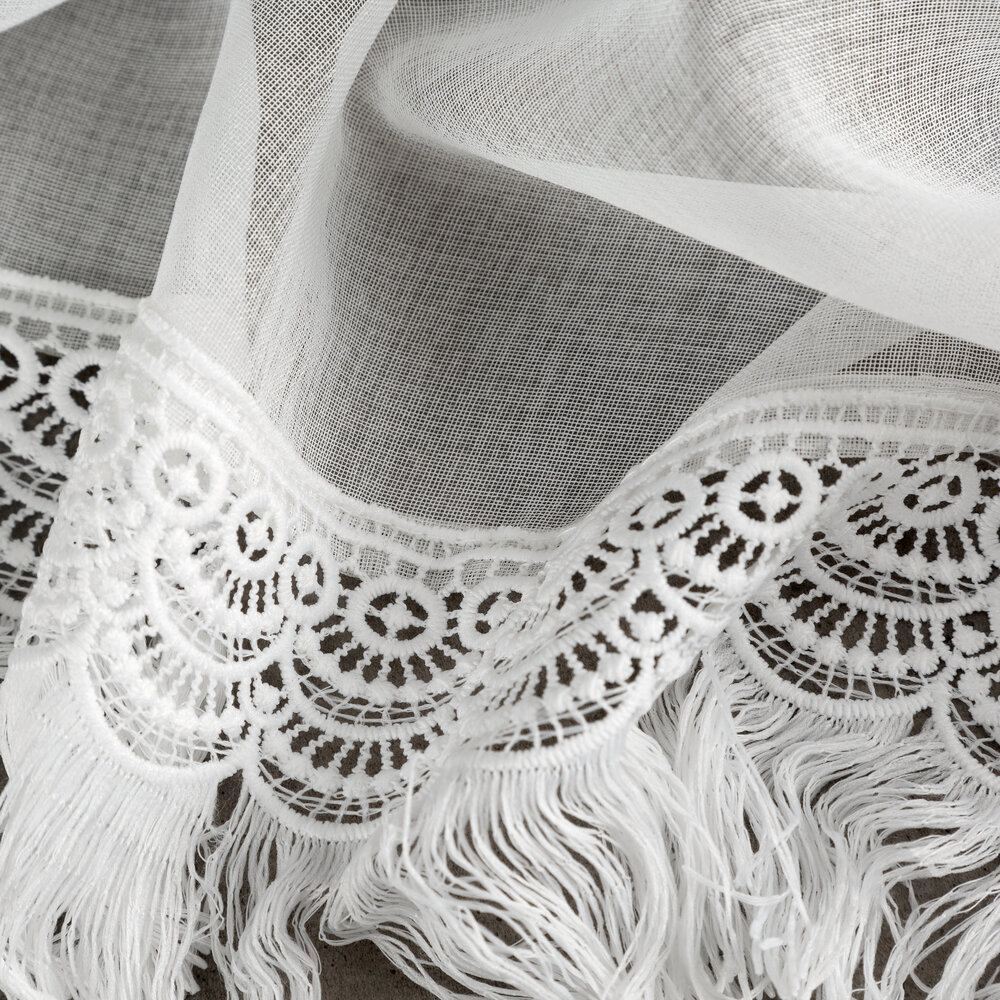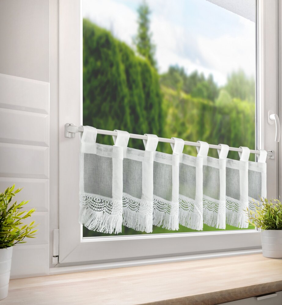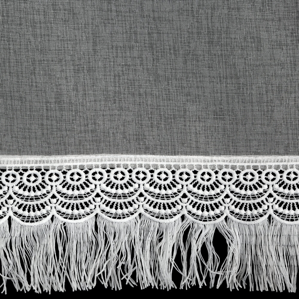 Zazdrostka gotowa z ozdobną obszywką z frędzlami szerokość: 150 cm, długość: 30 cm, kolor: biały, Skład: 100% poliester